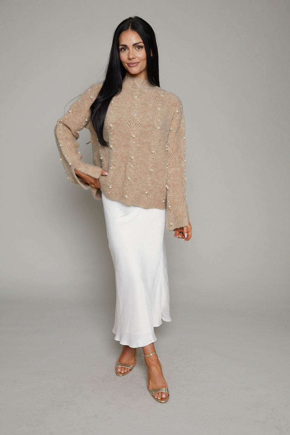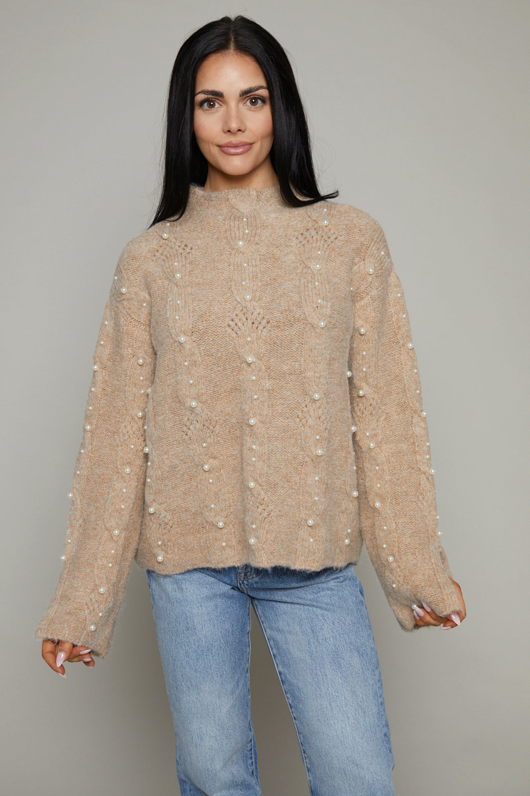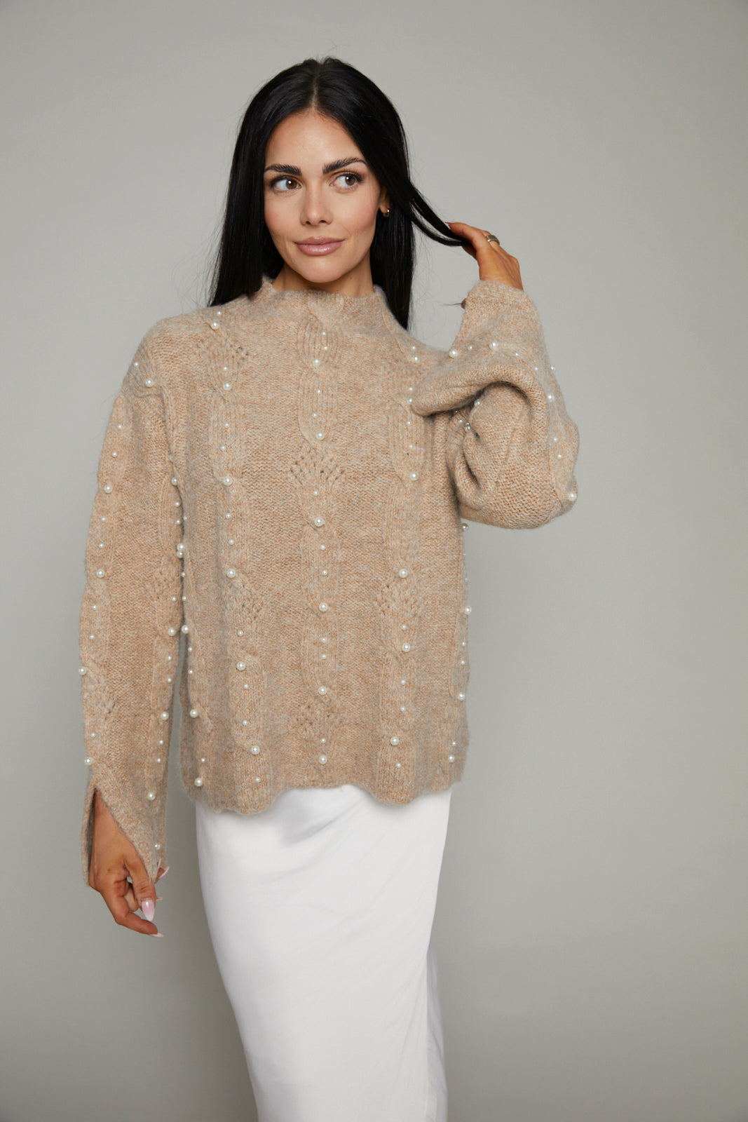 Pearl cable knit sweater