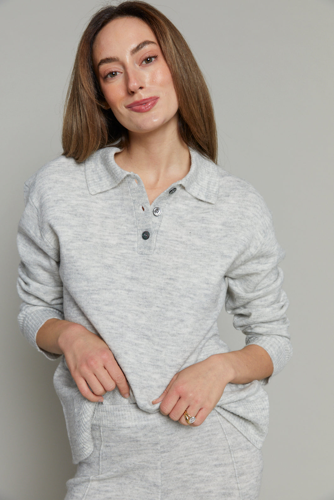 The Nixon Rugby Knit is made from a soft midweight yarn which has a subtle fluffy texture. The fit is relaxed with long sleeves and length finishing below the hips. Features include a fully knitted rugby collar, mock shell buttons and a soft rib hemline and cuffs.