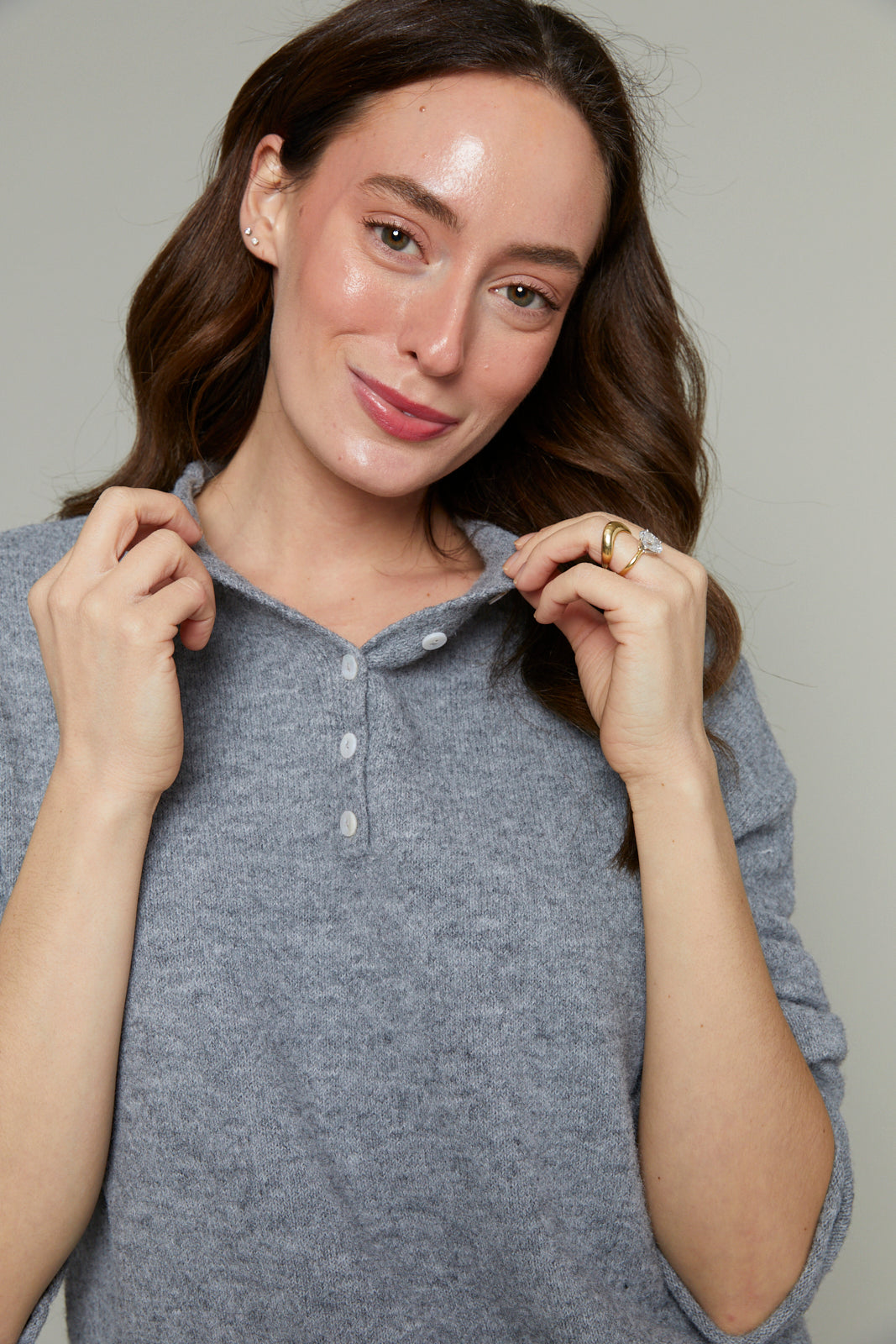 Soft and lightweight henley pullover thats gently textured with a relaxed fit and button neckline, it’s made for slow mornings, casual layering, and everything in between.
