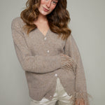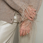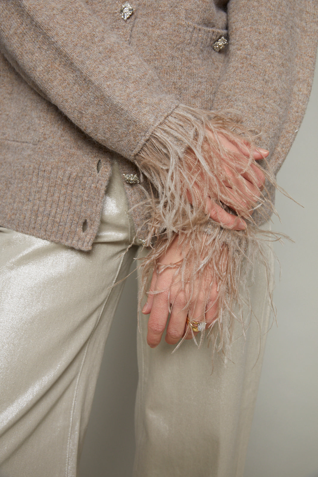 Sweet meets sophisticated in this rhinestone embellished sweater - a charming cardigan with feather trimmed sleeves. Perfect for brunch dates, office chic or cozy weekends with a stylish twist.