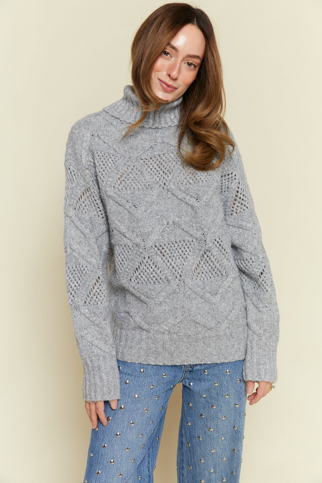 Saige Turtleneck Sweater - Heather Grey