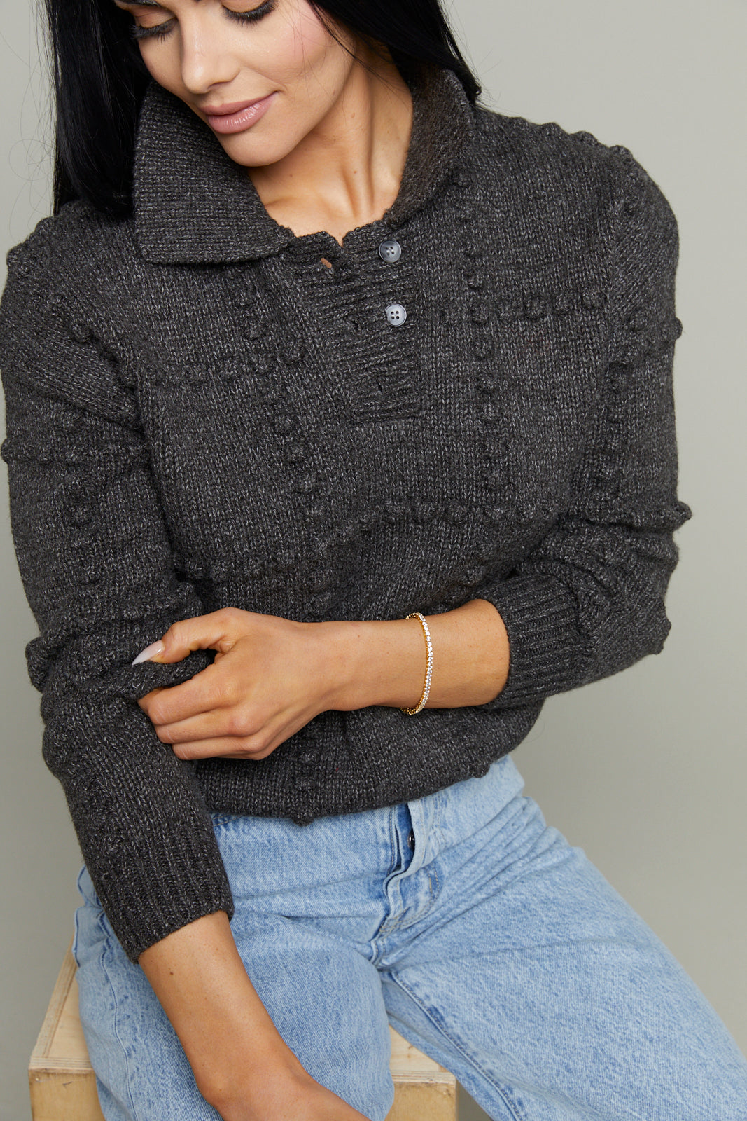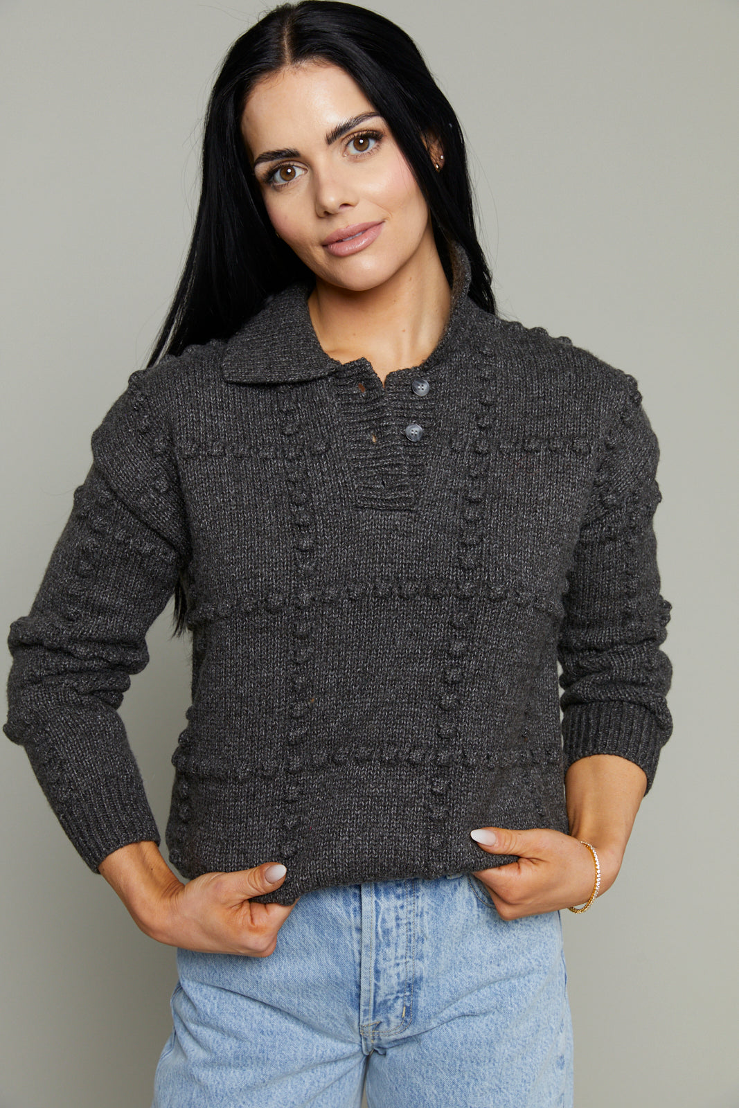Sydney Textured Knit Polo Sweater