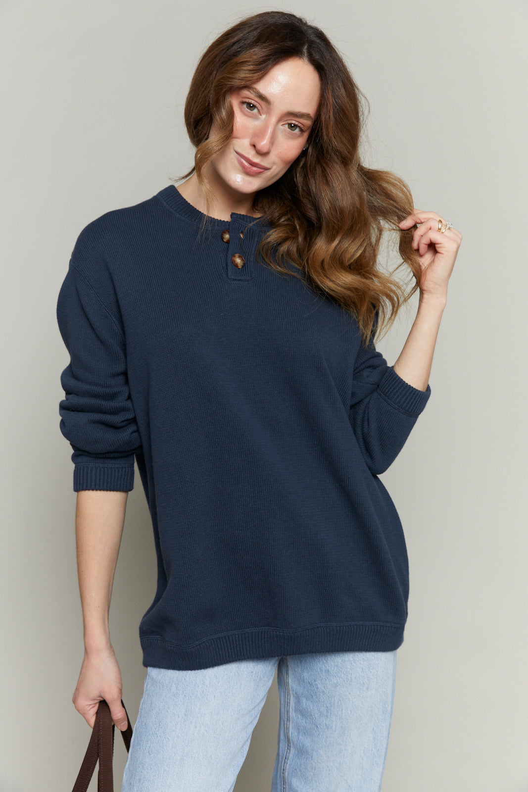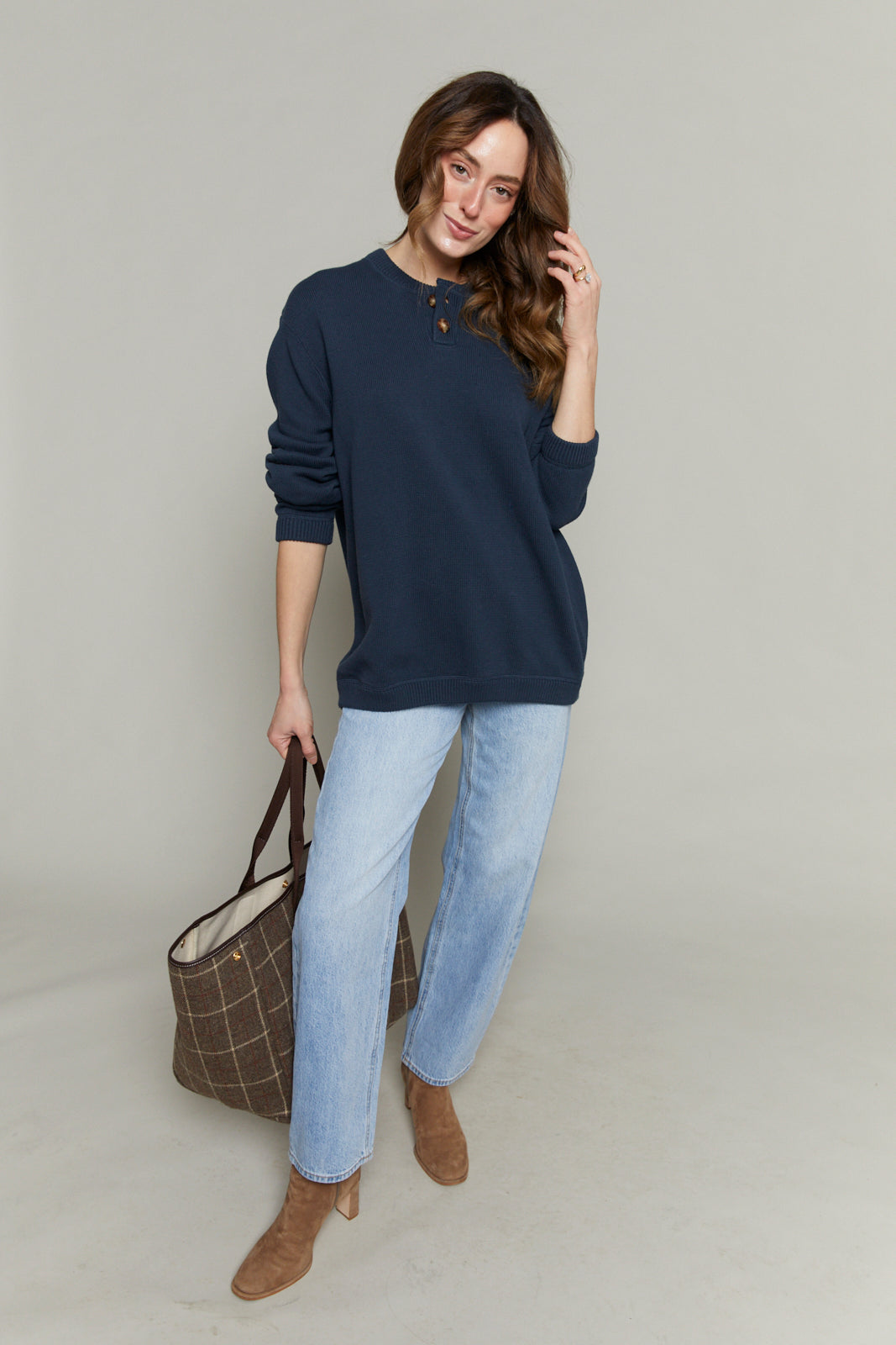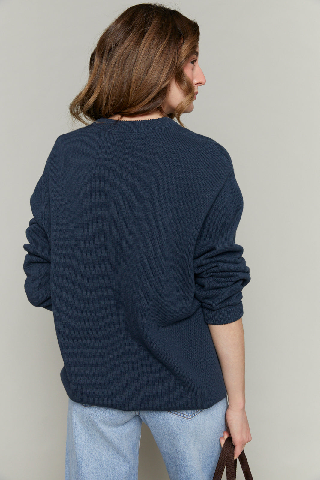 Make room in your closet (and his). Featuring a varsity boxy fit and made with a lightweight cotton blend, this sweater will effortlessly take you from season to season