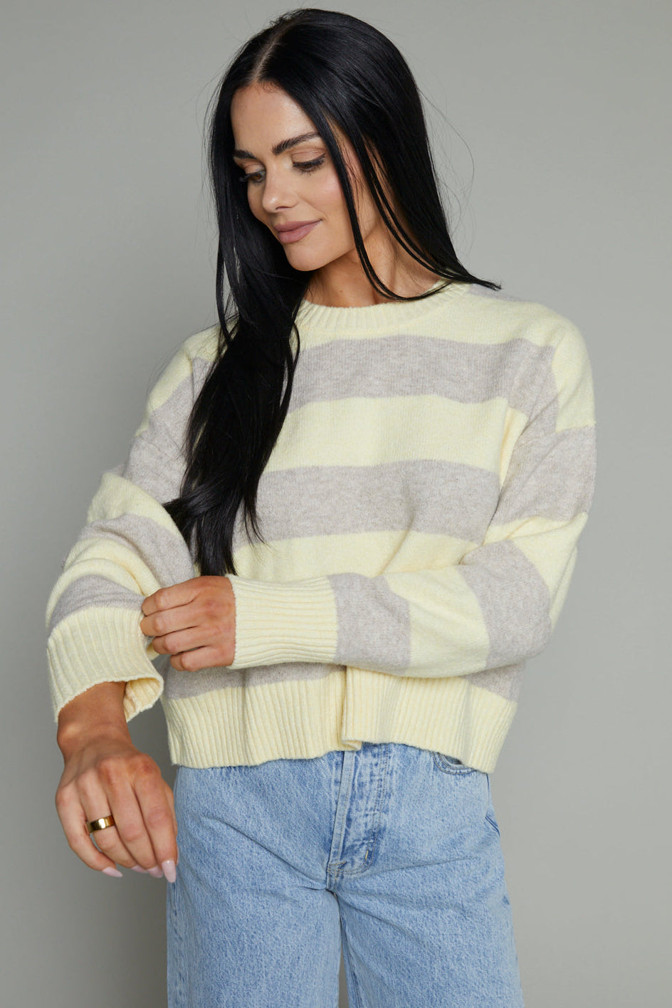 Jules Striped Cropped Sweater Jacket - Natural Heather