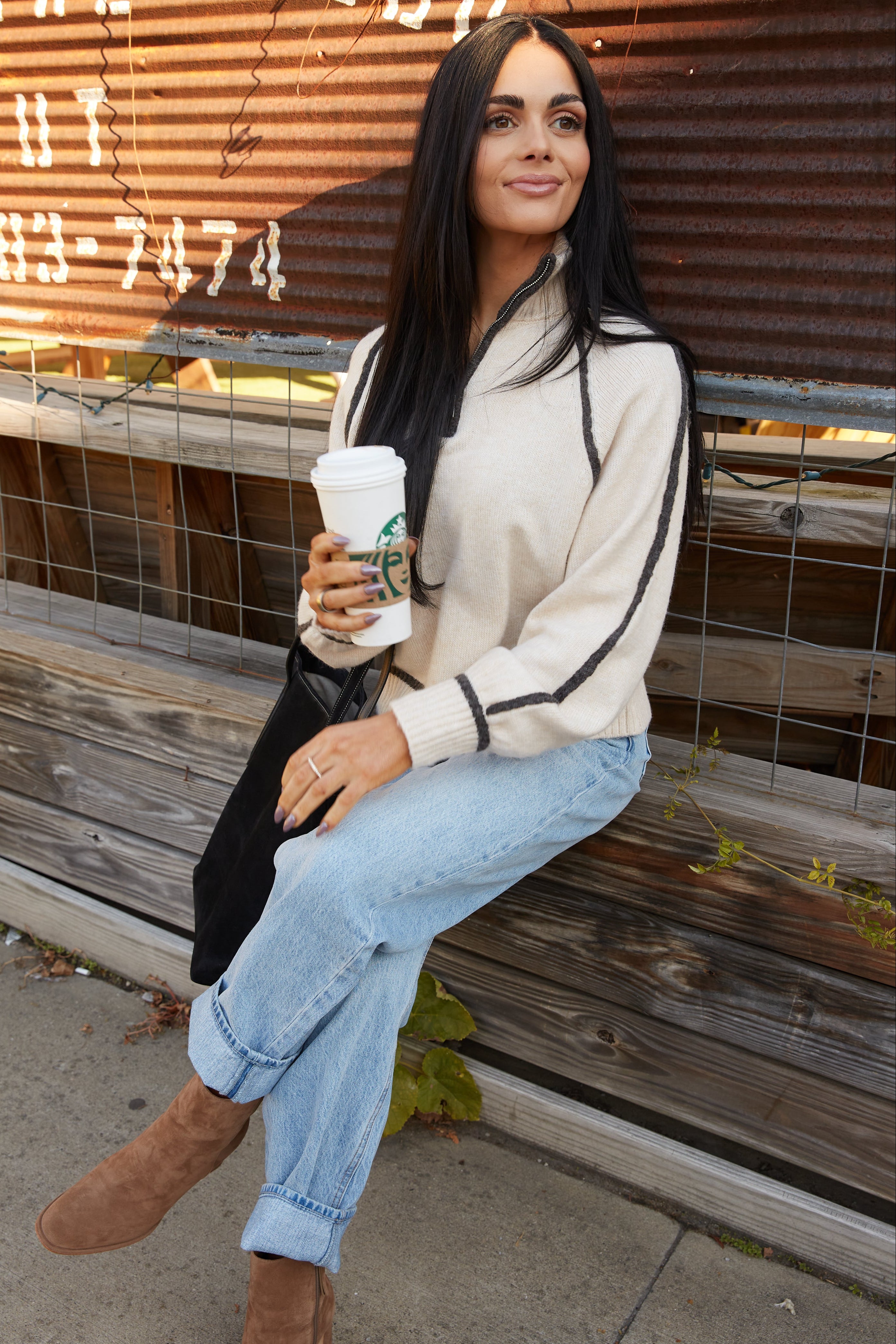 Byron Oversized Half Zip Sweater - Light Heather Oatmeal