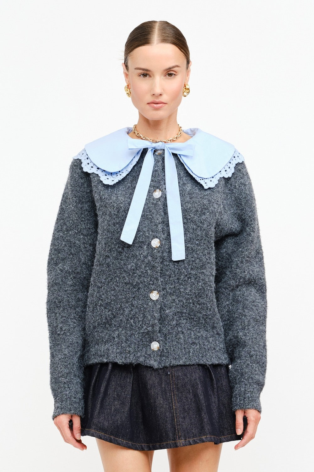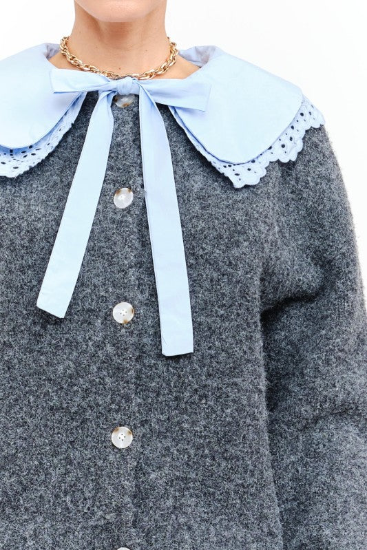 Opal Embroidered Lace Collar Cardigan - Charcoal