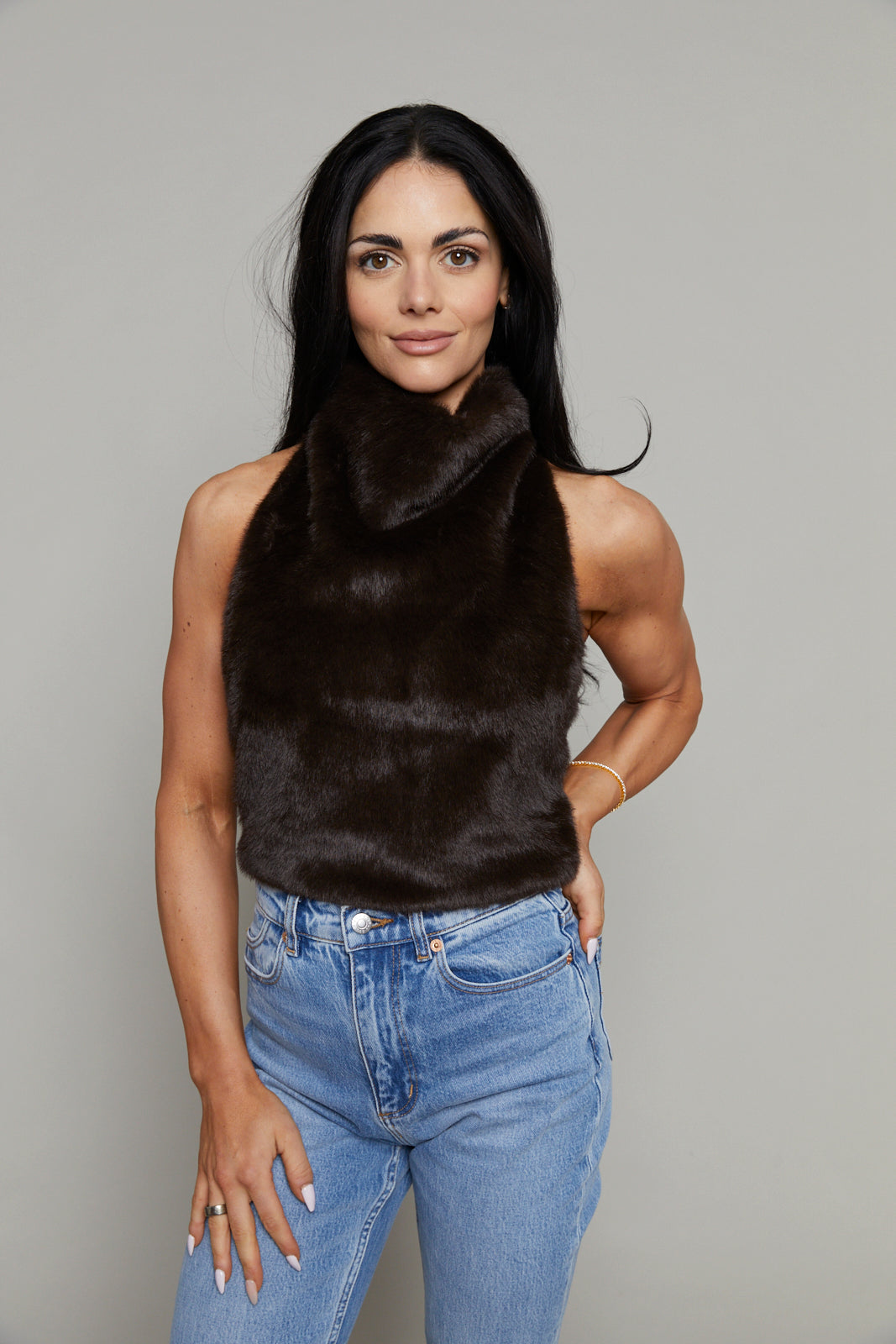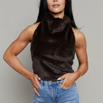 - Mid-weight faux fur halter top