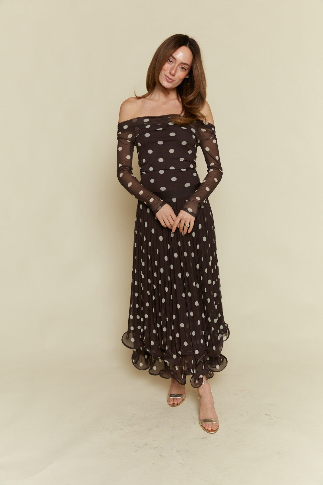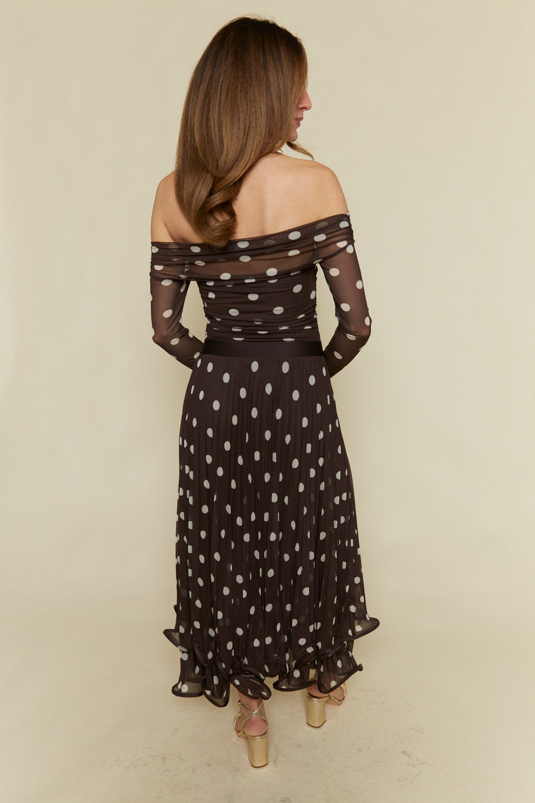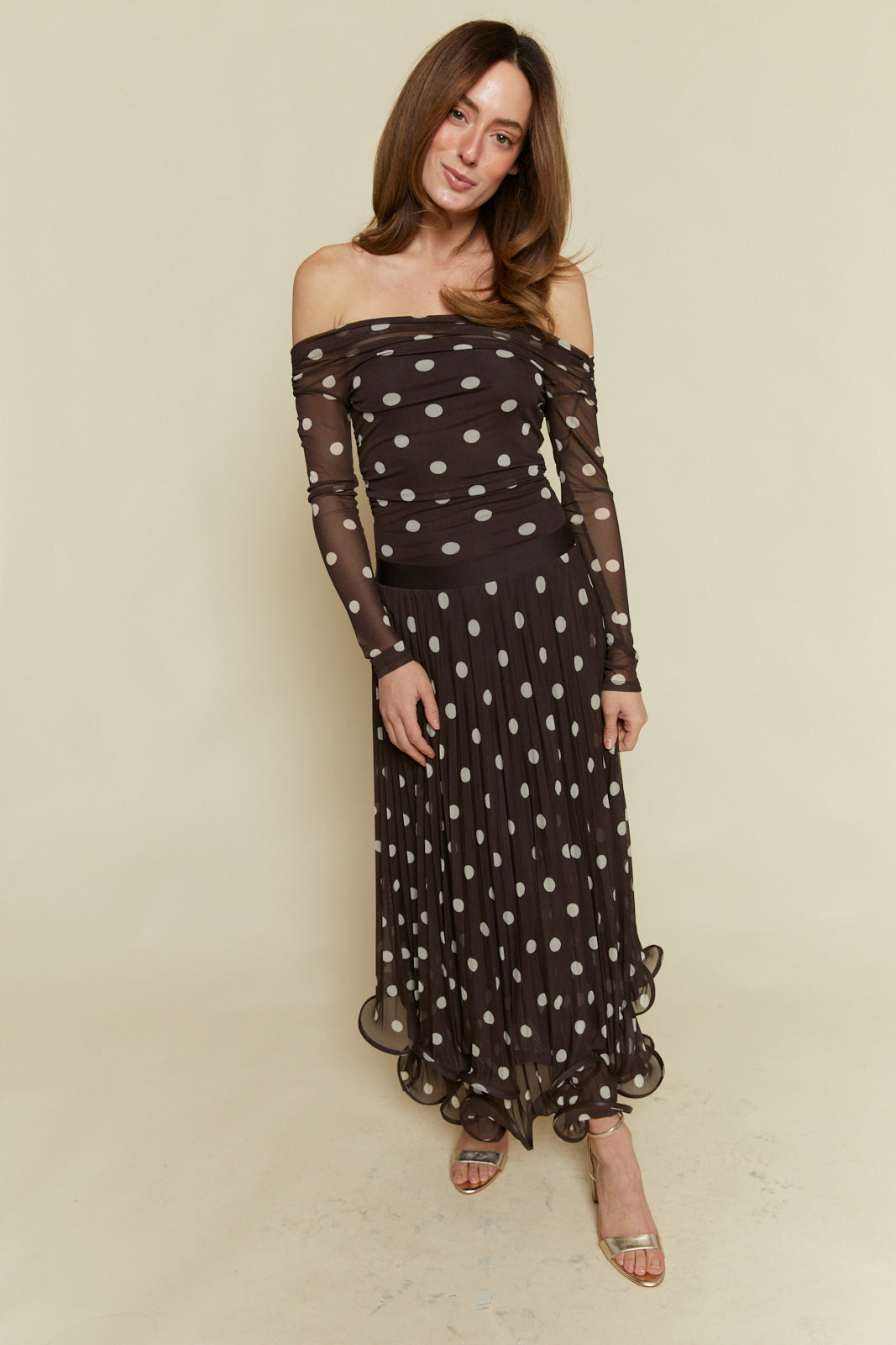 Brielle Polka Dot Mesh Maxi Skirt