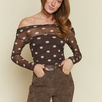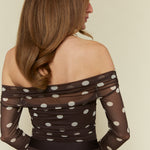 Off the shoulder polka dot mesh bodysuit