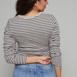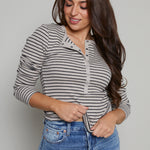 Arianna Striped Model Rib Henley - Heather Taupe