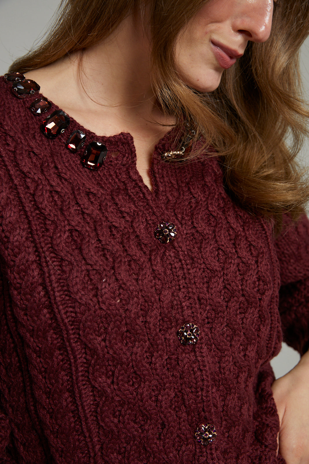 With its delicate jeweled embellishments, this cable knit cardigan elevates everyday workwear while staying versatile for any occasion.