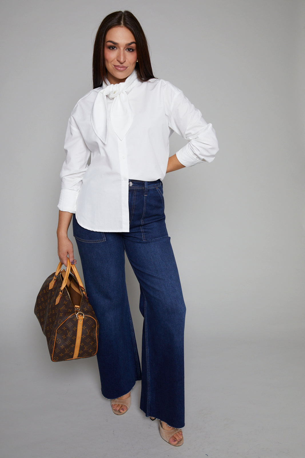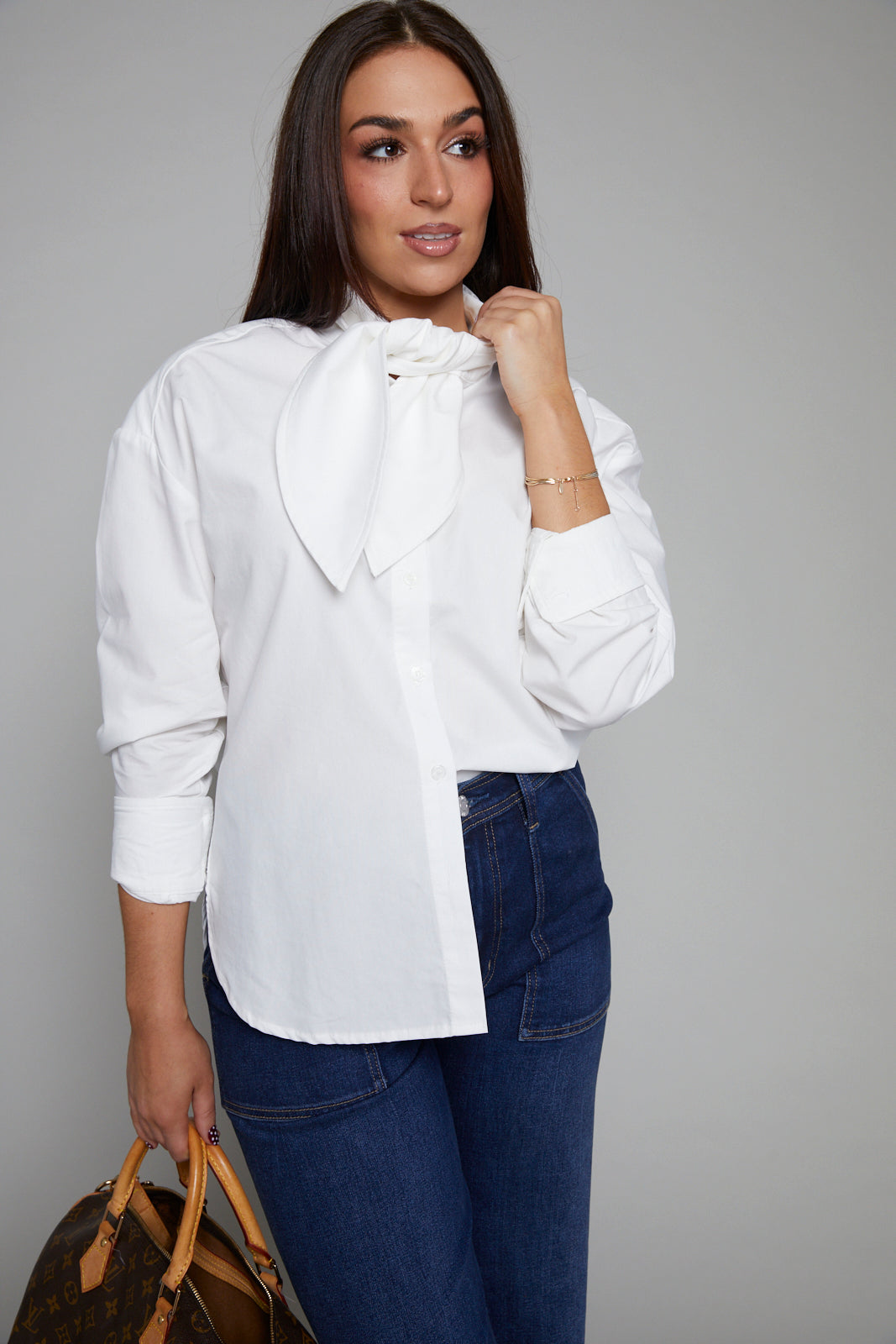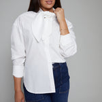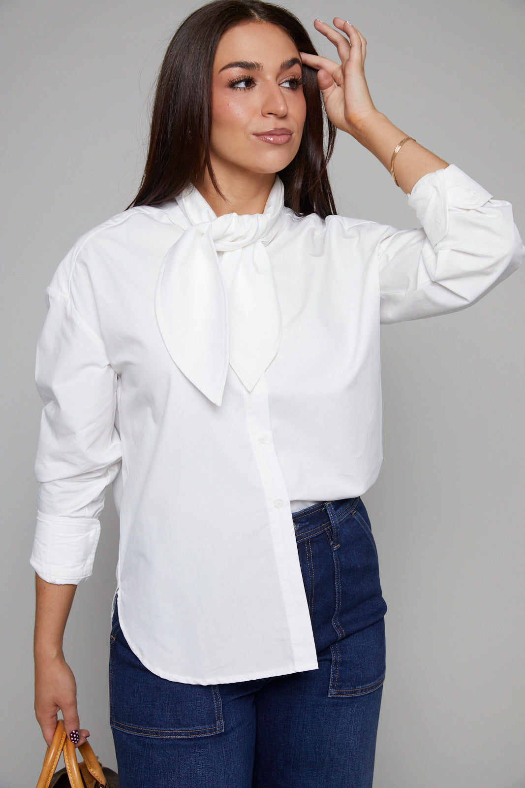 Embrace timeless elegance with the Bethany Tie Collar Button Front Shirt. Its delicate tie collar adds a touch of vintage charm, while the crisp button-front design keeps your look effortlessly polished.