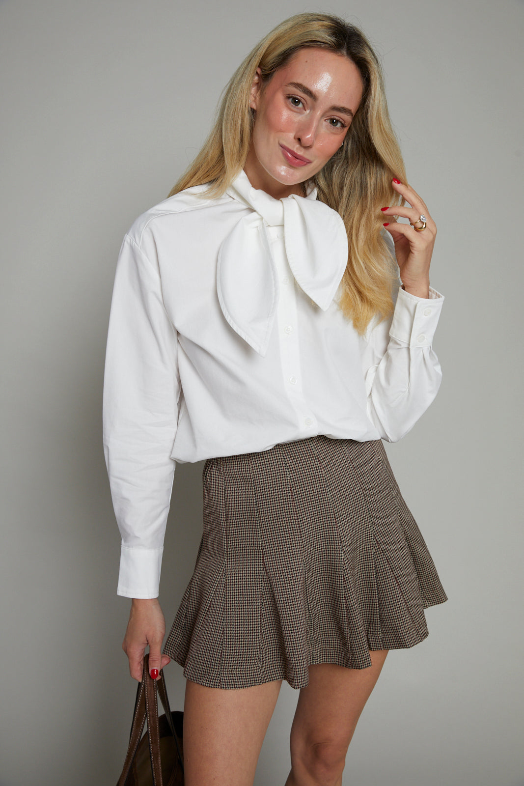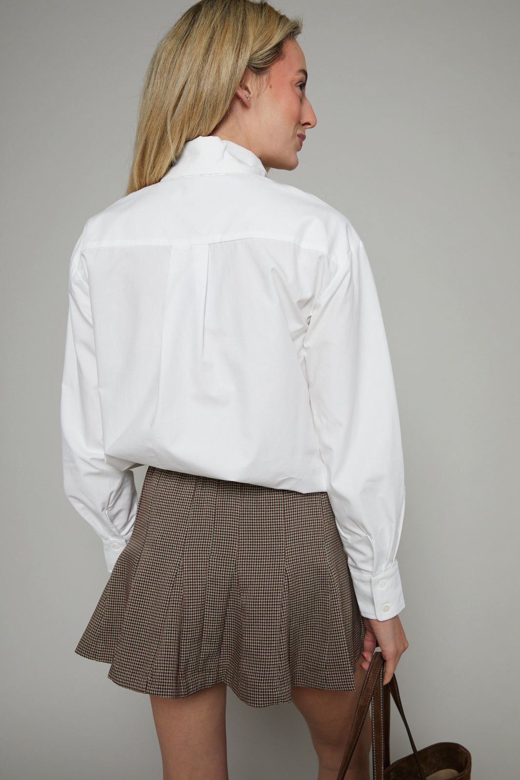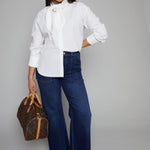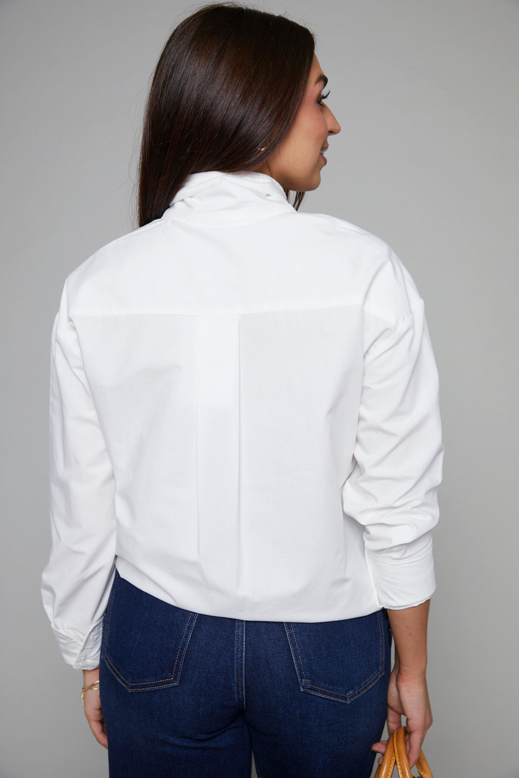Embrace timeless elegance with the Bethany Tie Collar Button Front Shirt. Its delicate tie collar adds a touch of vintage charm, while the crisp button-front design keeps your look effortlessly polished.