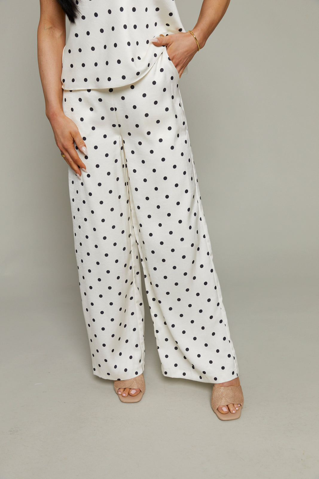 - Mid-weight non-stretch satin effect fabric - Polka dot print - Hip slant pocket - Hook-and-eye and concealed zipper at side seam - Lined