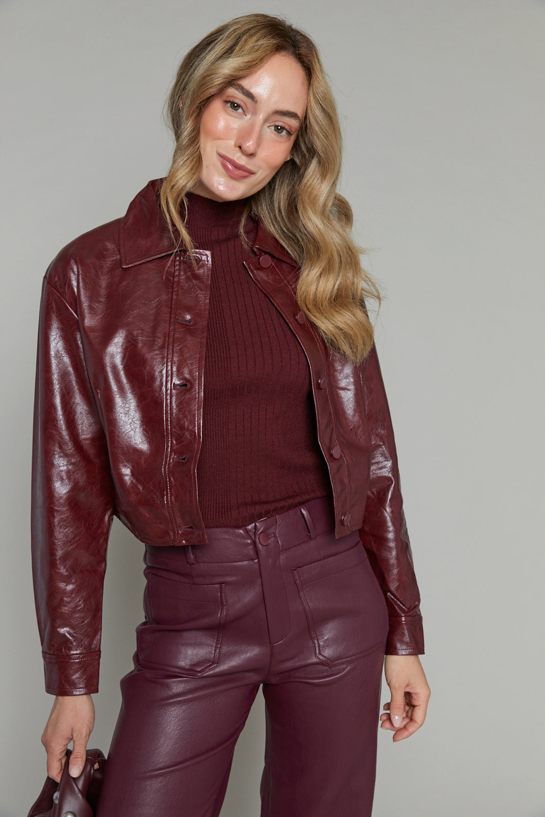 Elevate your wardrobe with the Casey Cropped Faux Leather Jacket, a perfect blend of edgy style and modern sophistication. Its cropped silhouette adds a playful yet confident touch to any outfit, while the smooth faux leather offers the look of classic leather without compromise.