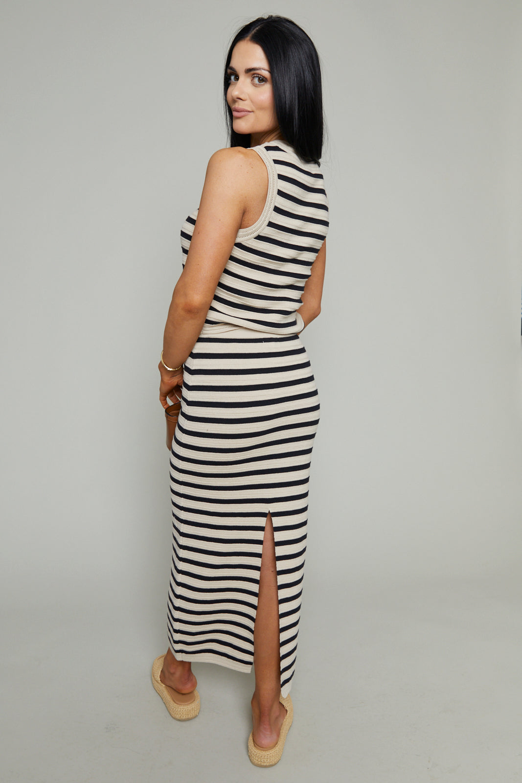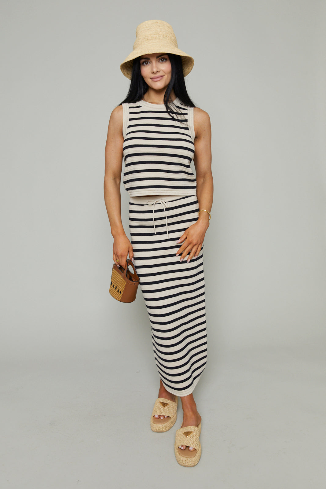 A classic stripe in a cool knit fabric makes this tank an easy choice.