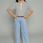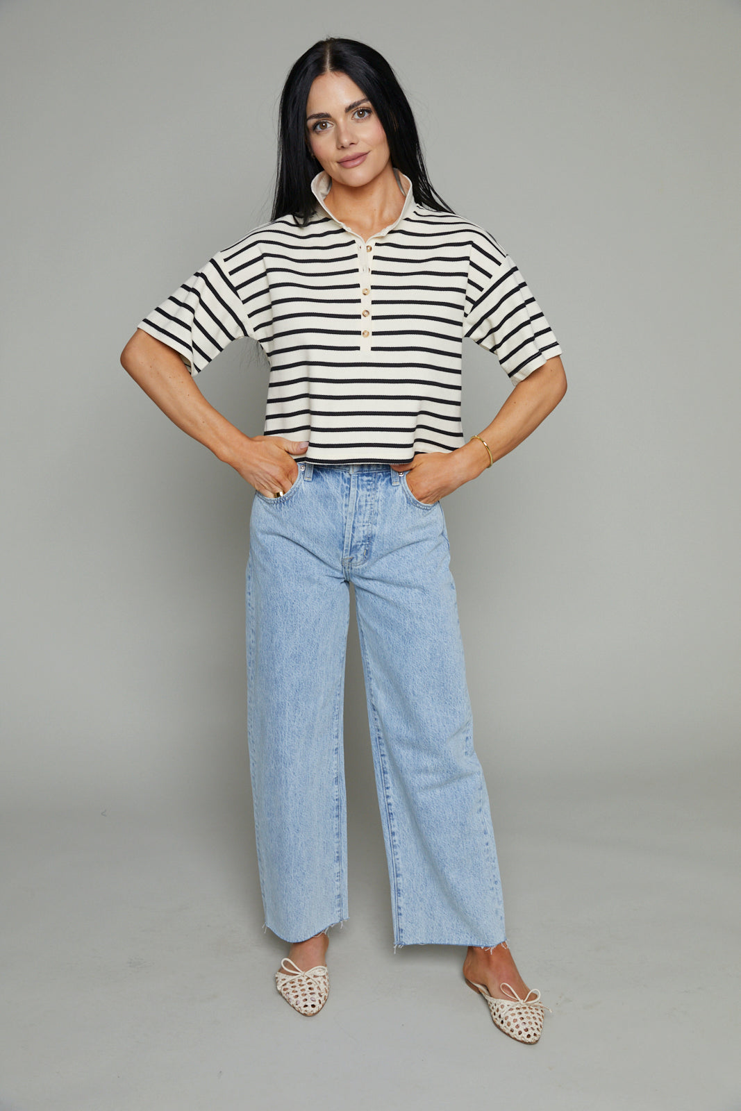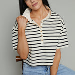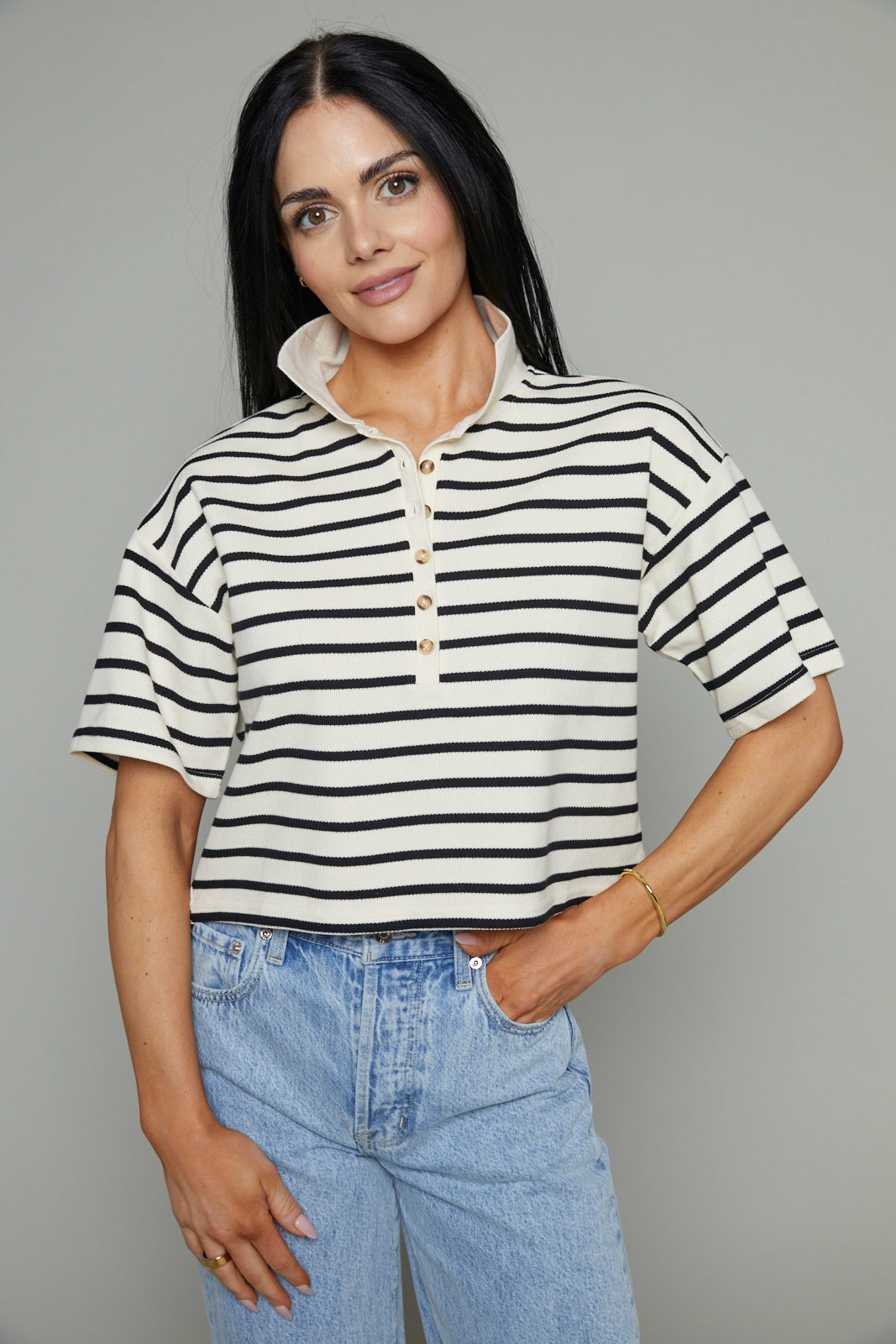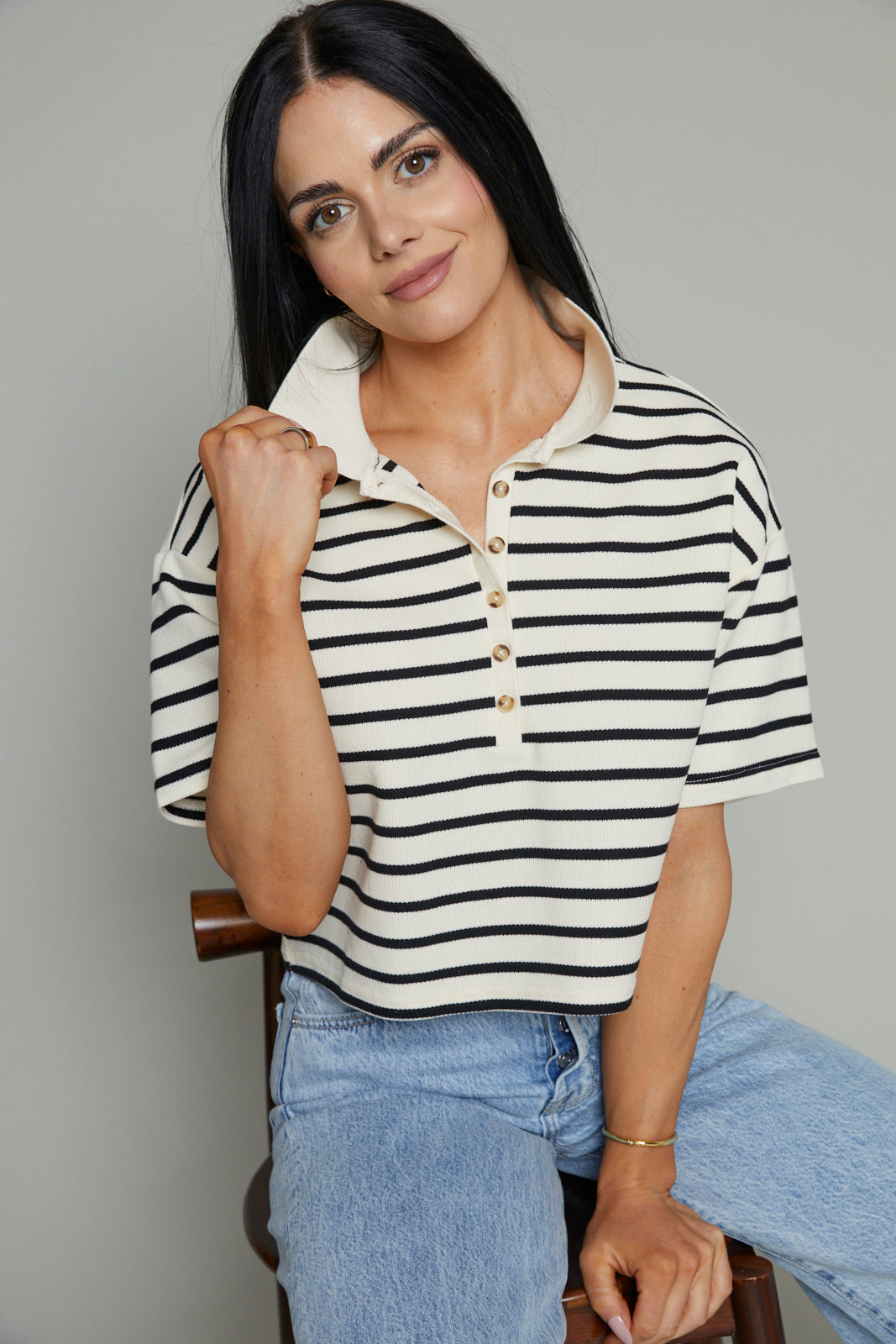 Textured Short Sleeve Polo Shirt with Tortoise Shell Buttons