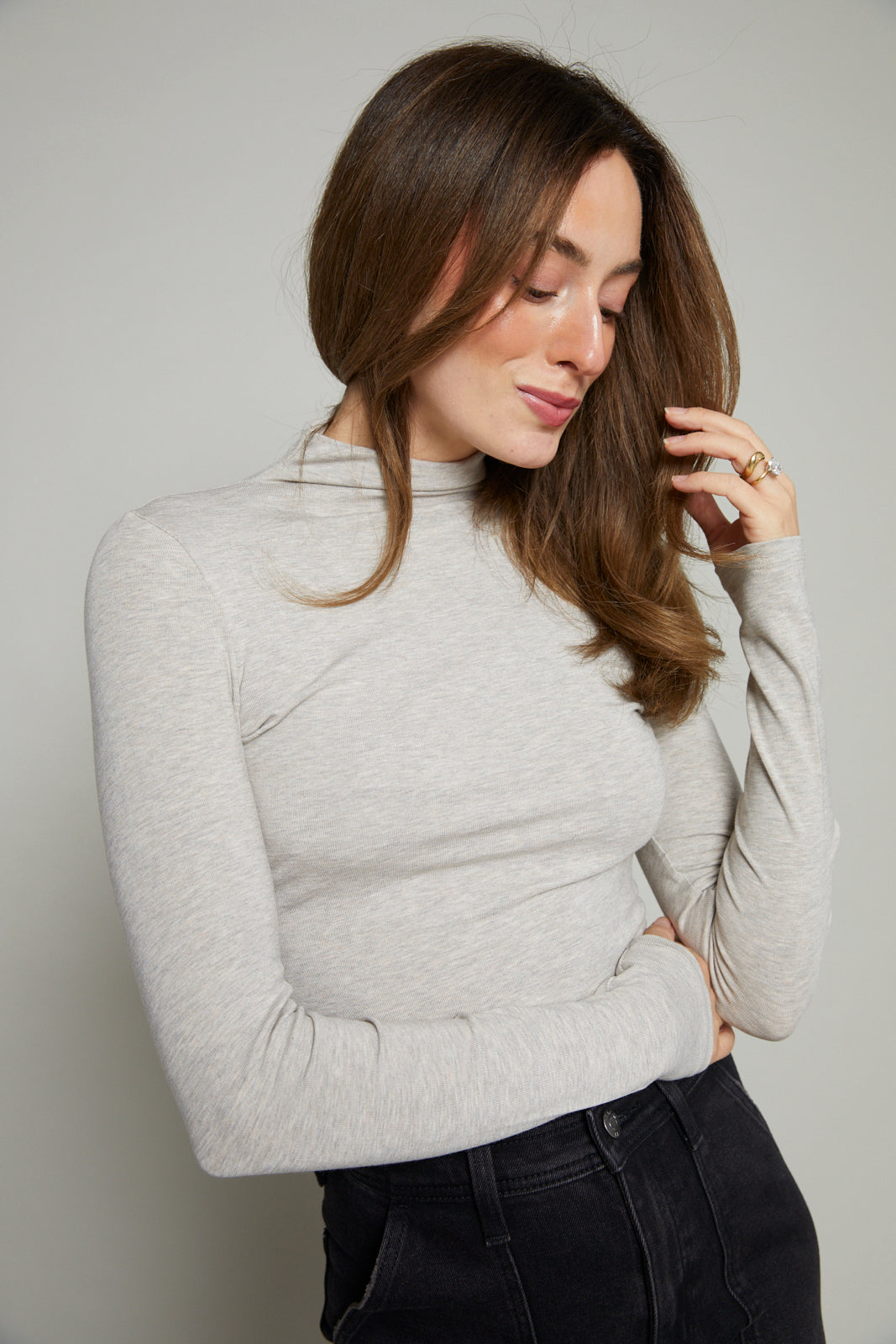 A smooth, body-hugging rib turtleneck that layers as seamlessly as it fits.