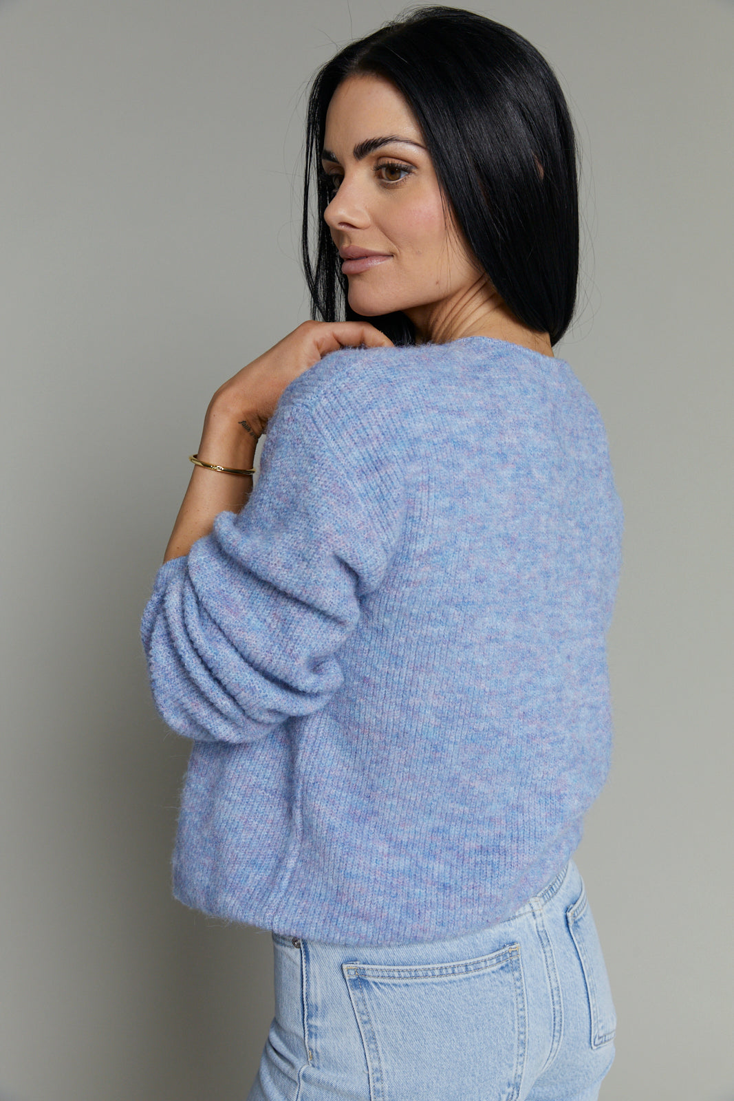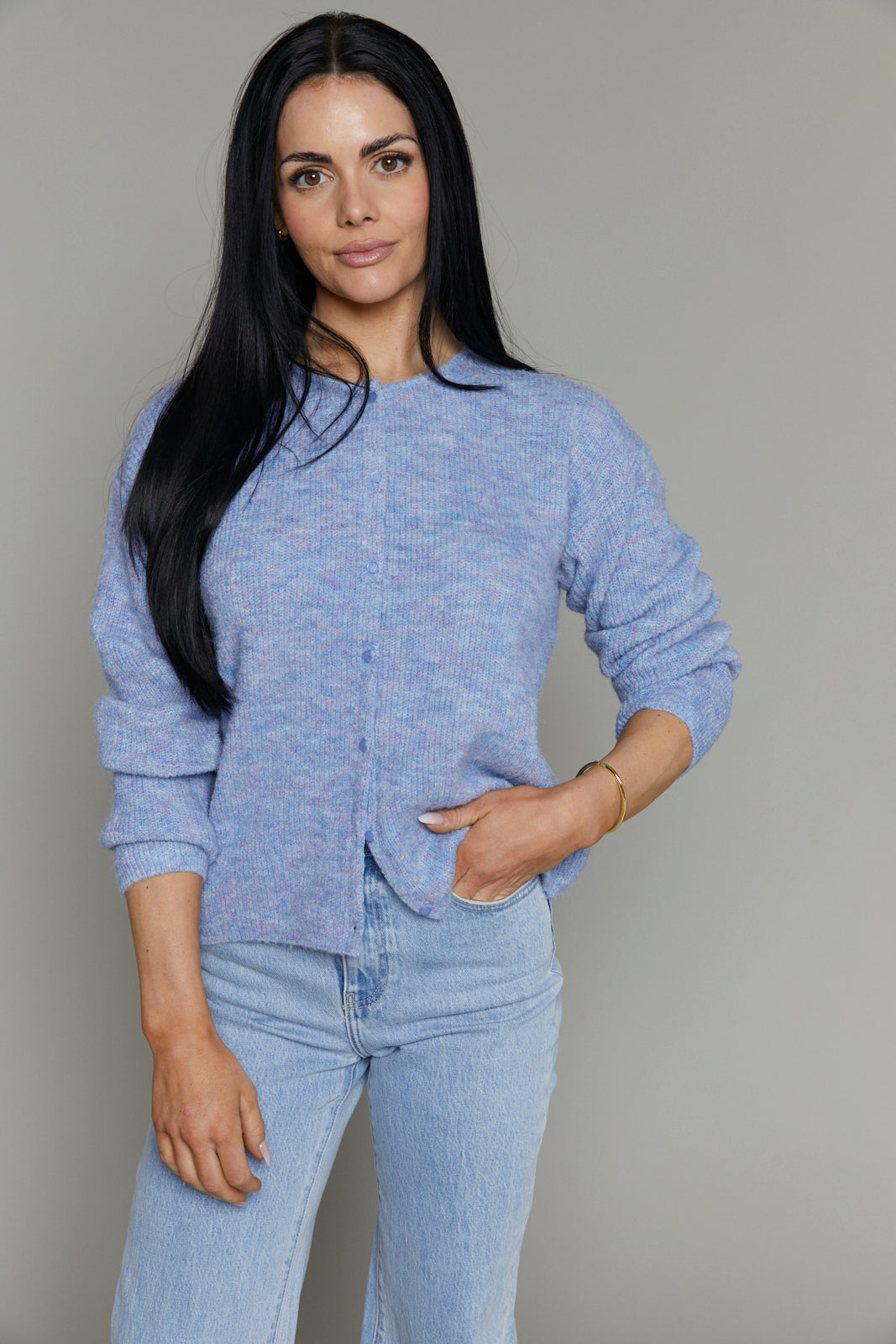 Elizabeth Ribbed Knit Cardigan - Blue Heather