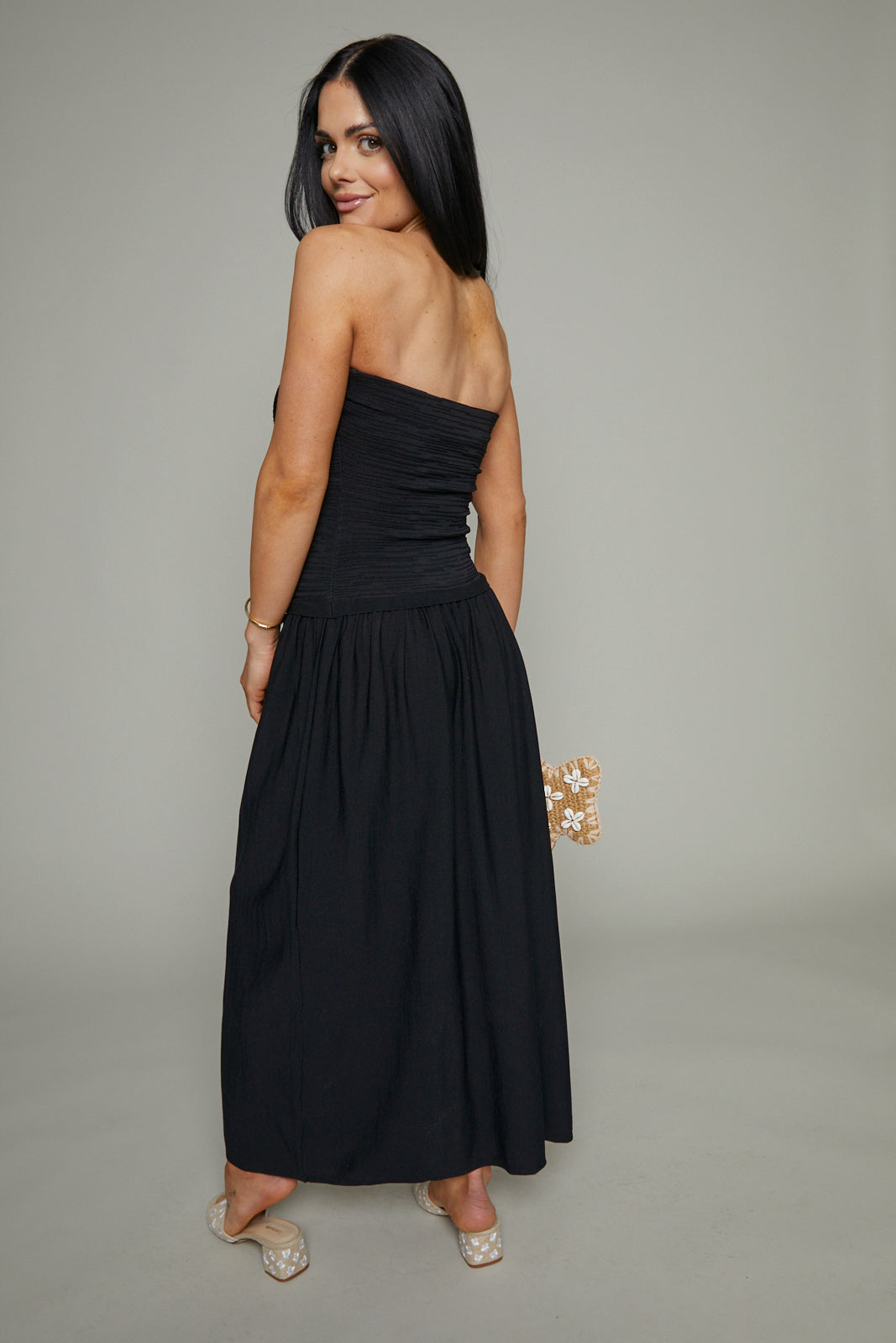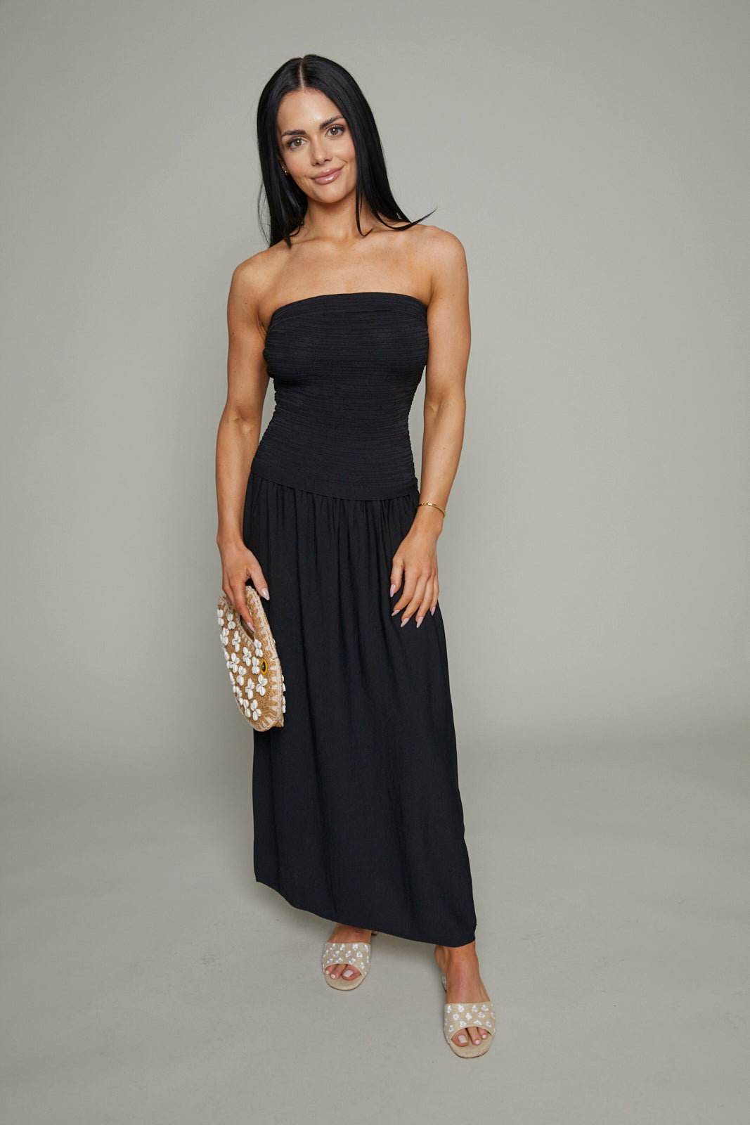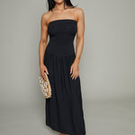 Step into effortless elegance with the Flora Ruched Strapless Maxi Dress. This flowing silhouette gently embraces your figure, while delicate ruching adds a touch of timeless charm. Designed without straps, it highlights your shoulders and neckline, making it perfect for sunlit afternoons or evening gatherings.