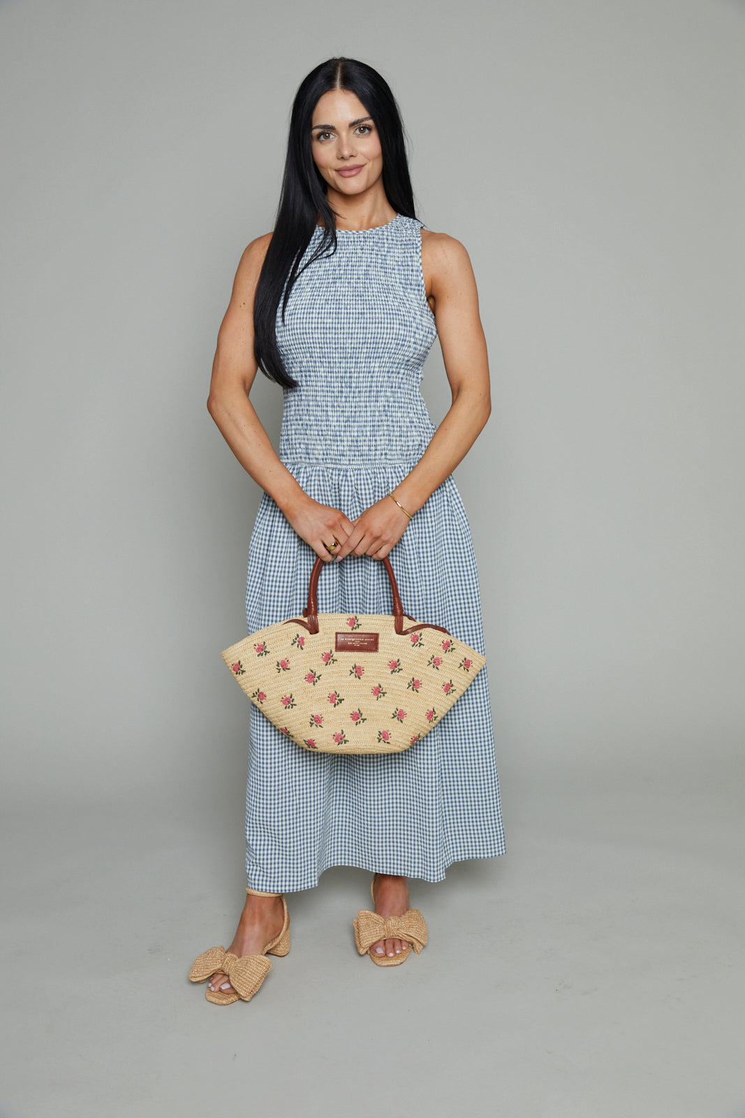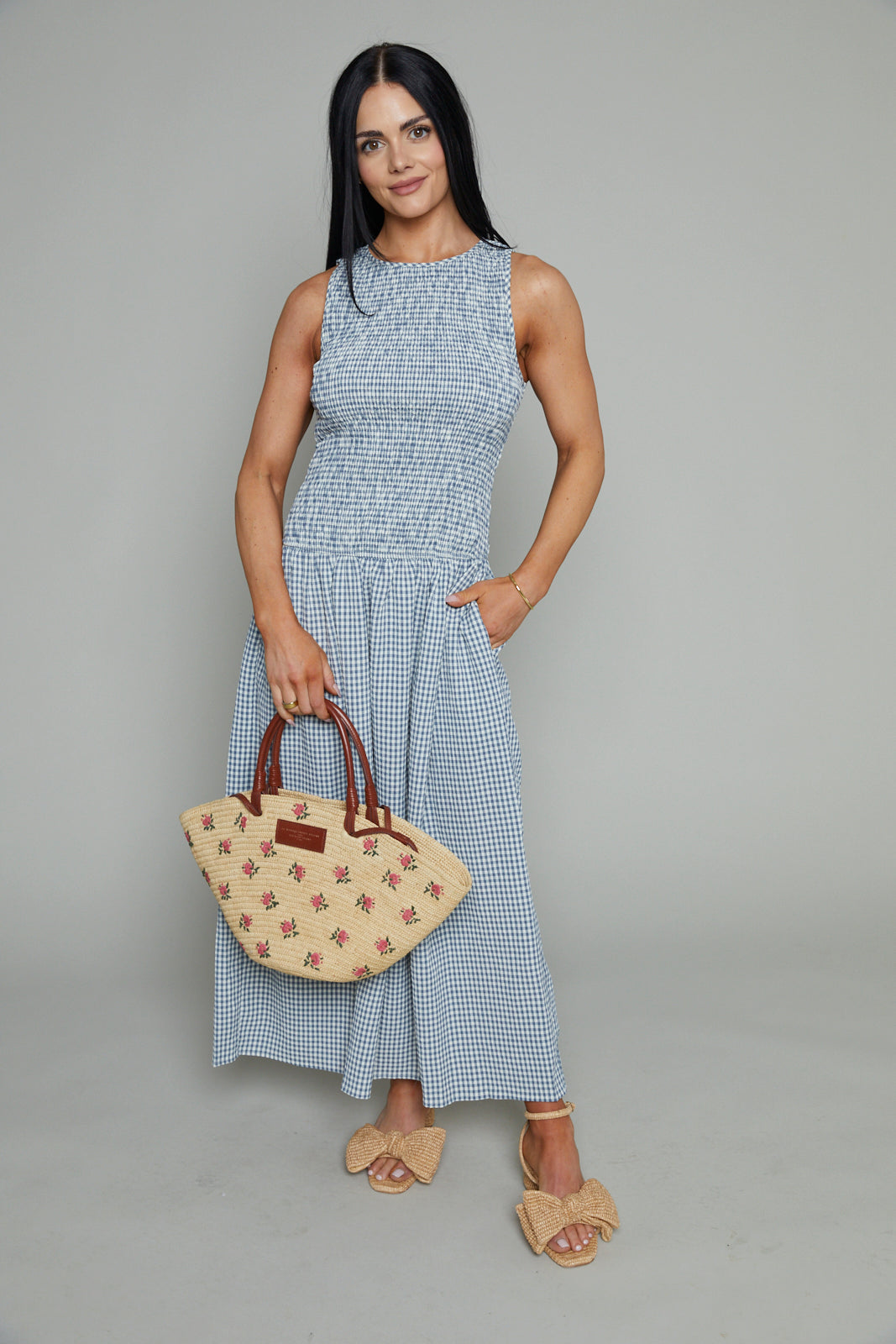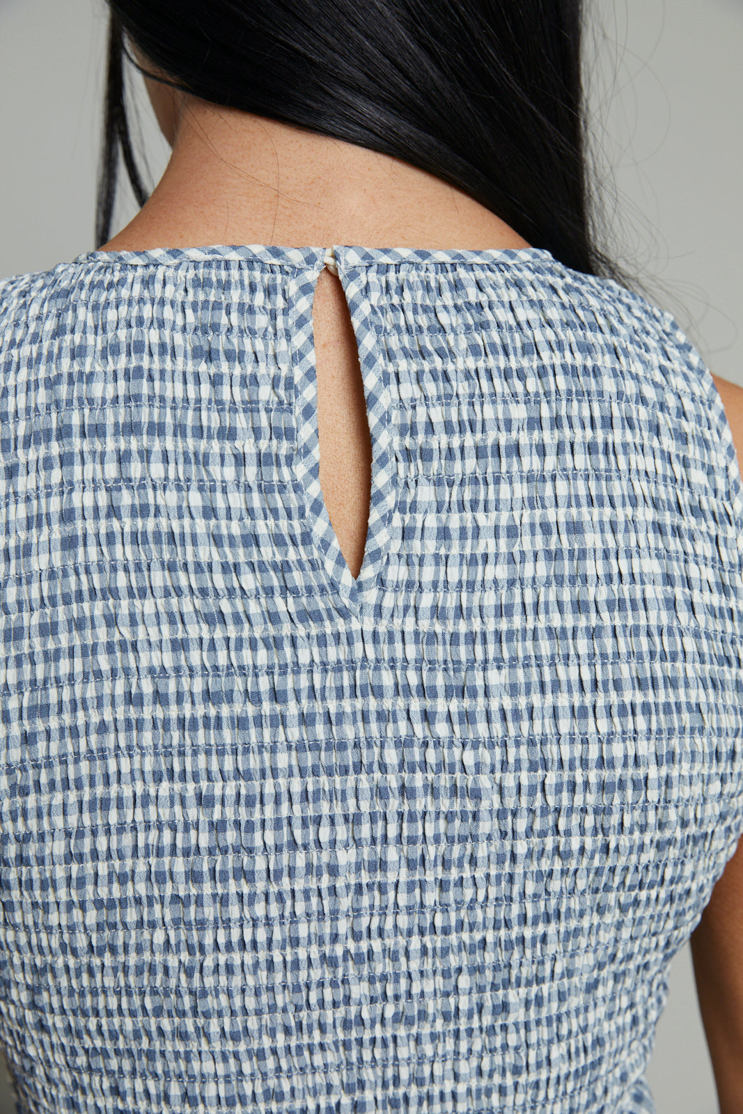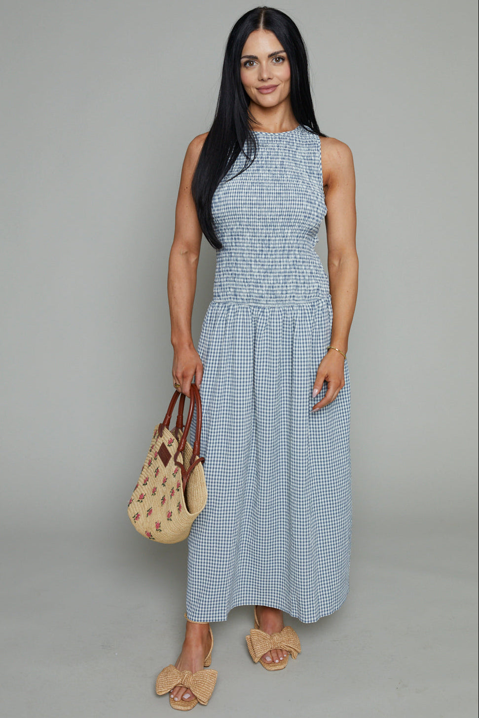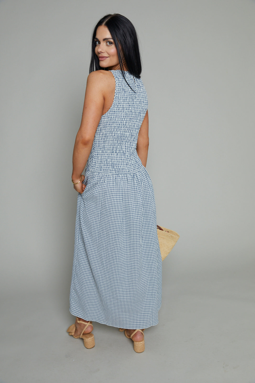 Gina Seersucker Smocked Gingham Maxi Dress
