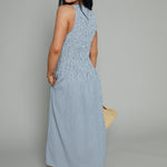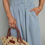 Seersucker Smocked Waist Gingham Maxi Dress