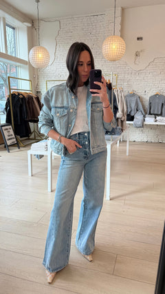 Designed with a high rise and an intentionally straight, full-length leg, Isabelle delivers a sleek silhouette with enduring appeal. The rigid, 100% cotton construction offers true denim character—finished with minimal detailing for maximum versatility.