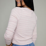 Soft rib texture and subtle stretch come together in this classic striped henley. It’s comfortable enough for lounging yet polished enough for going out. With a button-front detail and flattering fit, this piece is one you’ll reach for again and again.
