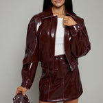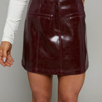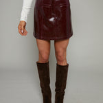 Jewel Vinyl Faux Leather Skirt - Bordeaux