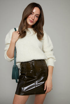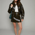 Jewel Vinyl Faux Leather Skirt - Kaki