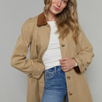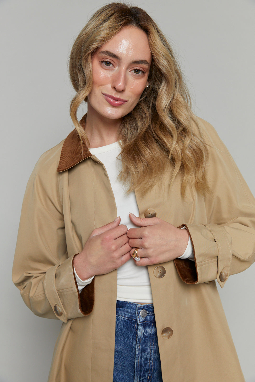 - Corduroy contrast collar and inner sleeve cuffs with option to roll up & expose