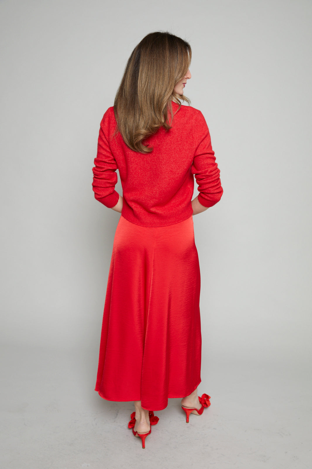 This midi-length skirt is cut in our luxe satin with a soft drape that moves with you. The high-rise fit and invisible zip closure keep the look clean and minimal, making it an easy piece to dress up or down for the season.