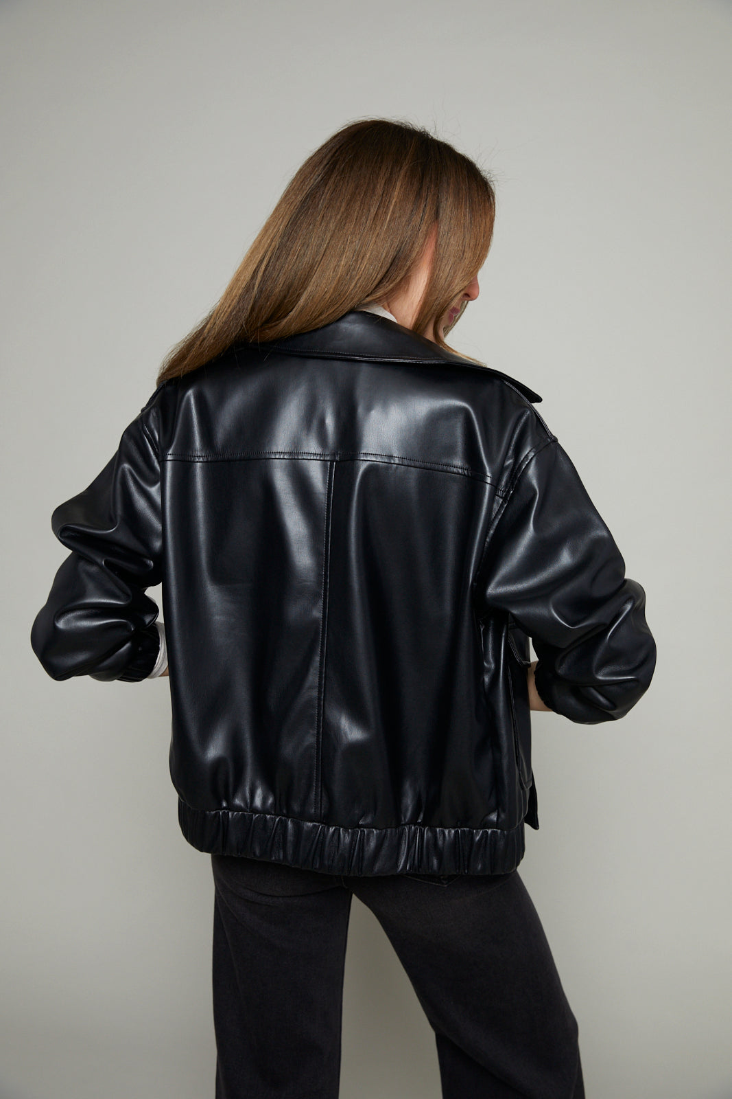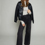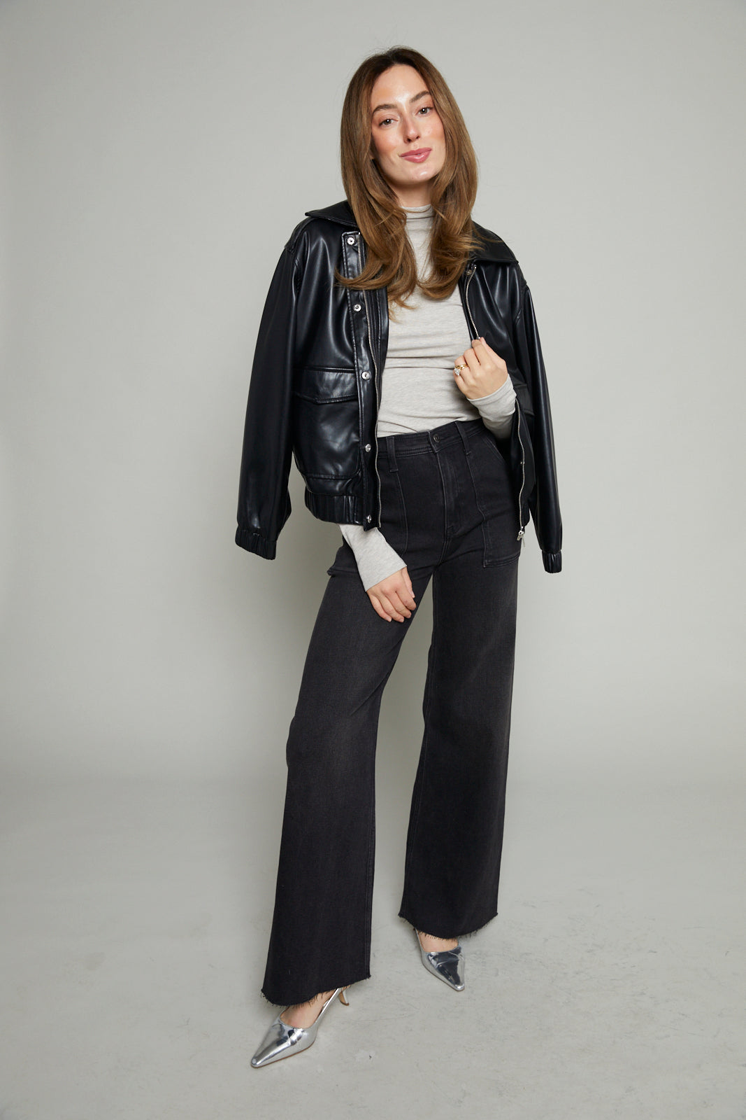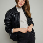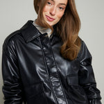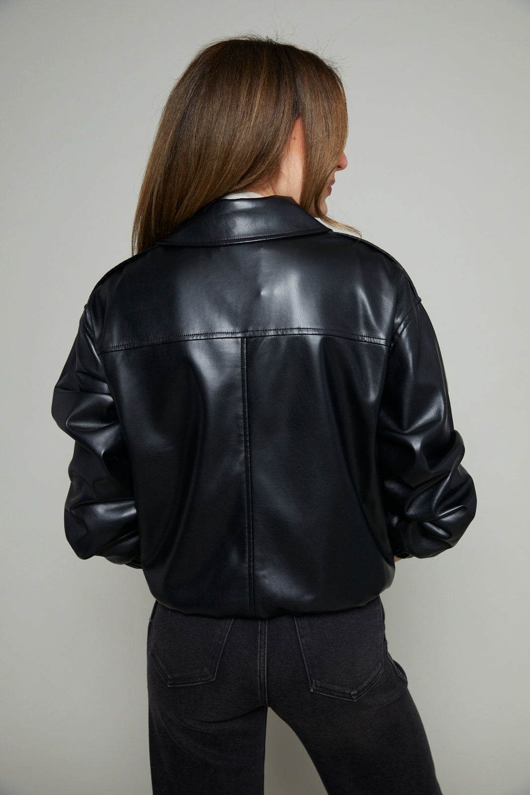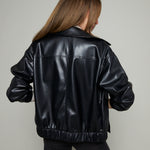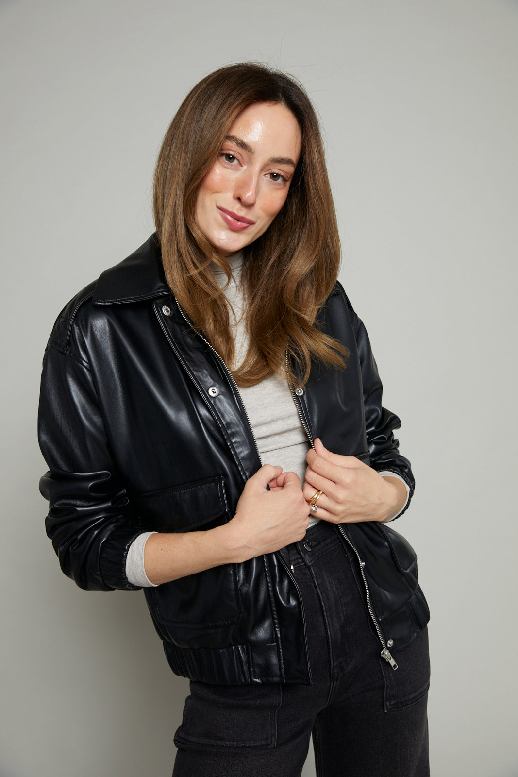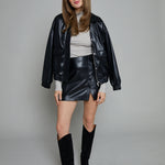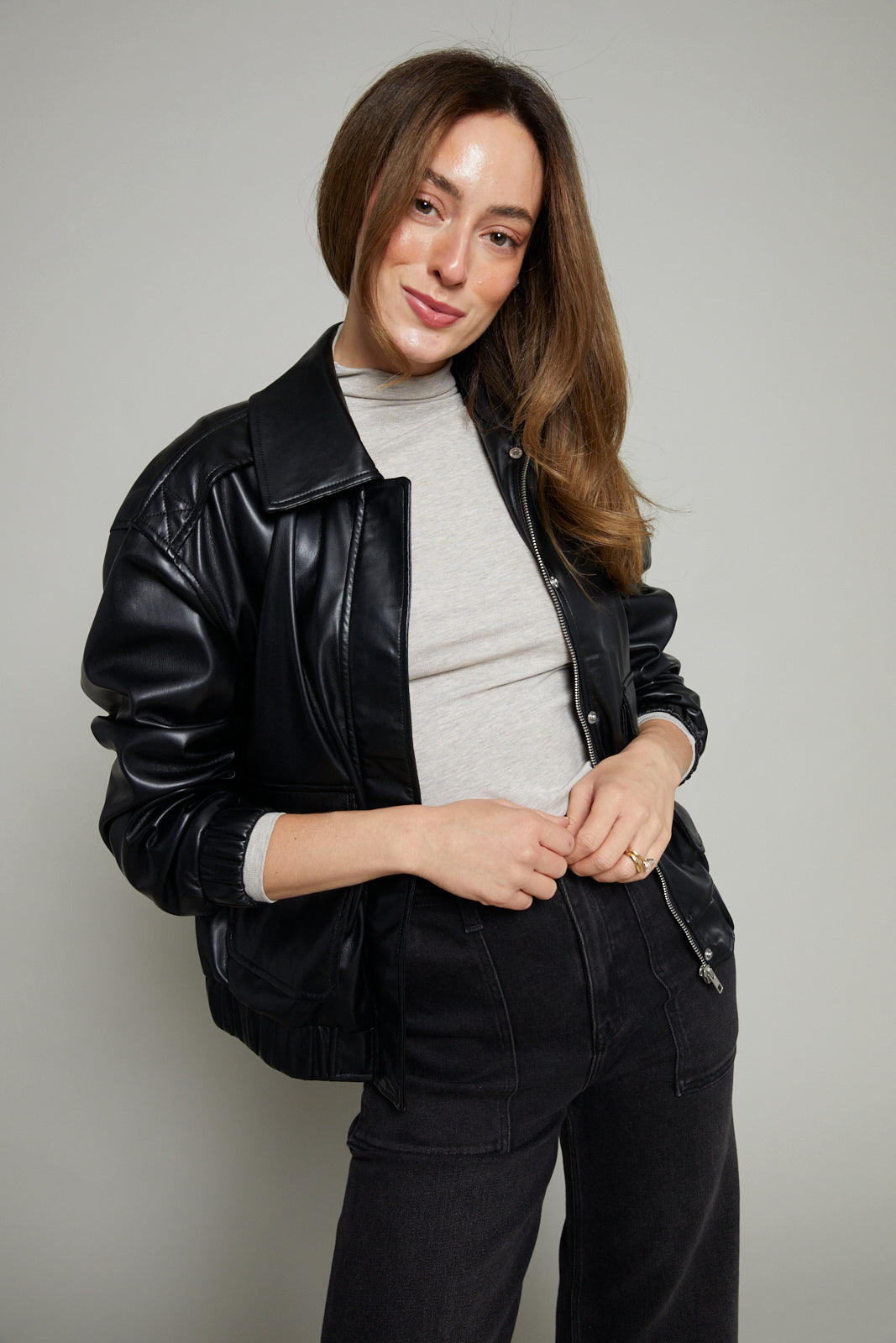 Classic bomber style reimagined in vegan leather for the ultimate cool-girl layer.