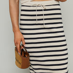 This striped midi skirt makes getting dressed easy with its versatile color combo. The 100% cotton knit fabric and elastic waistband bring the comfort to a high-rise fit. Pair with its matching top for an easy go-to look.