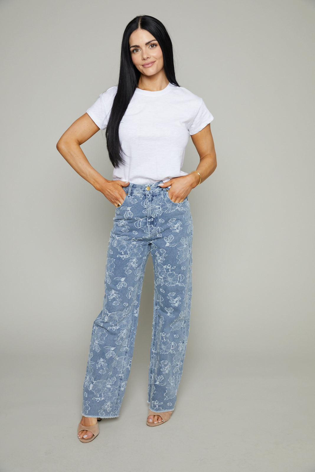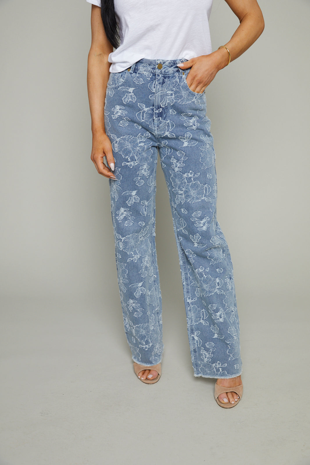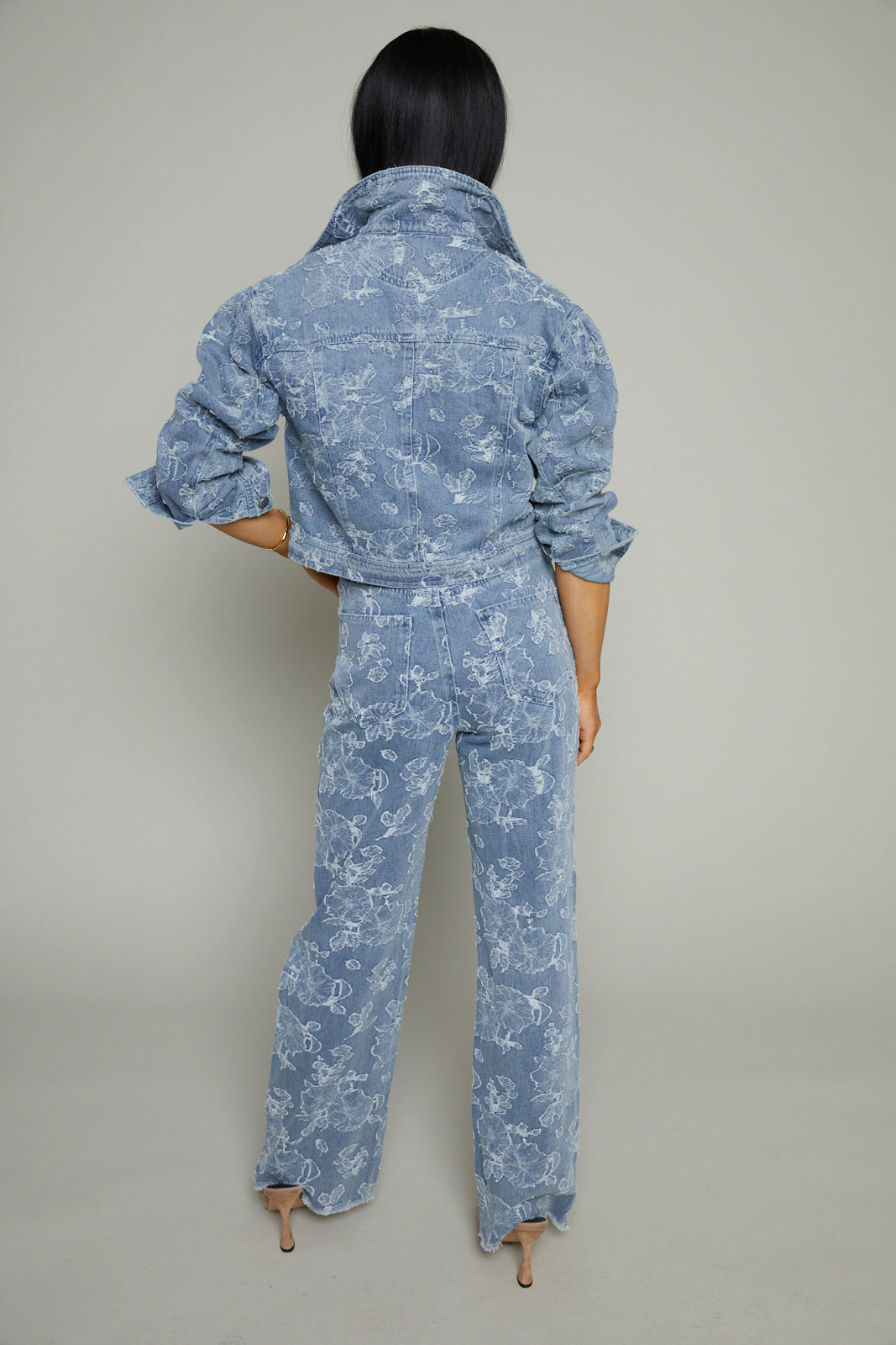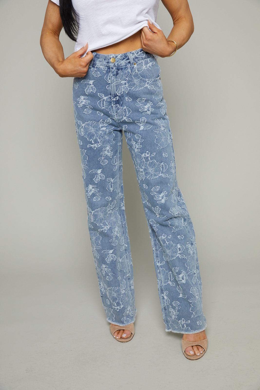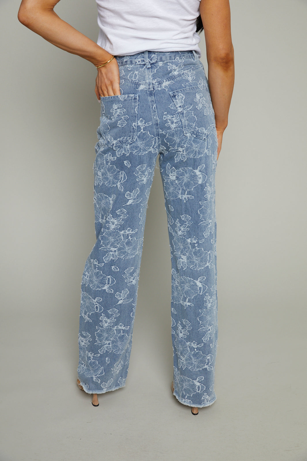 Rooney Floral Jacquard Distressed Denim Pants
