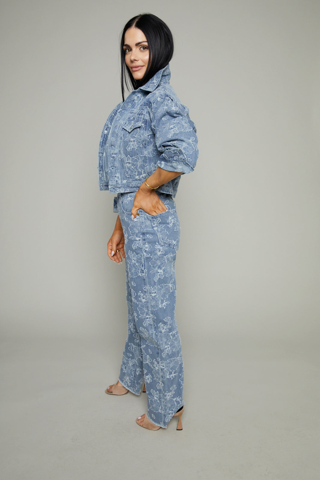 Floral Jacquard Denim Pants