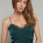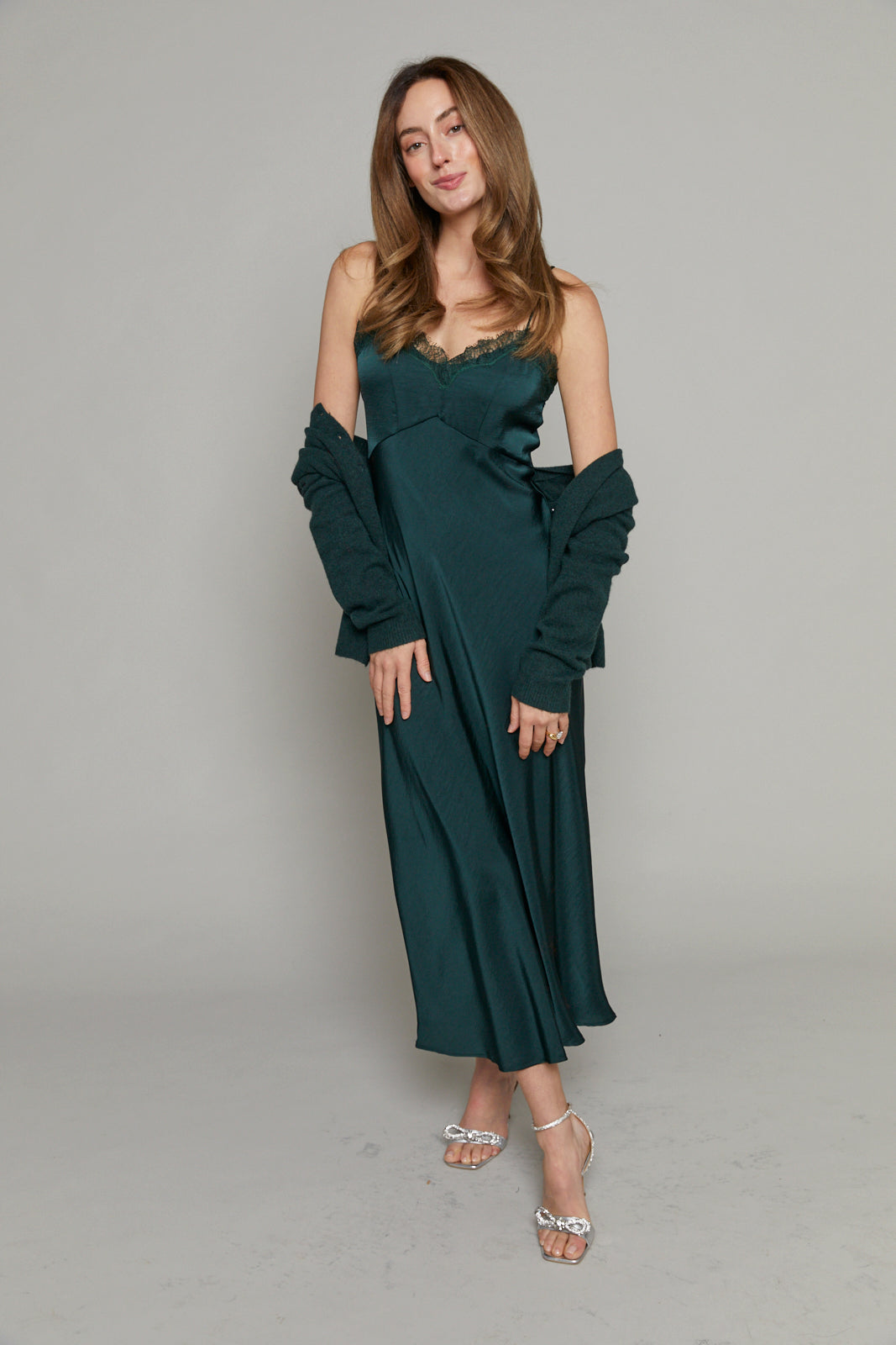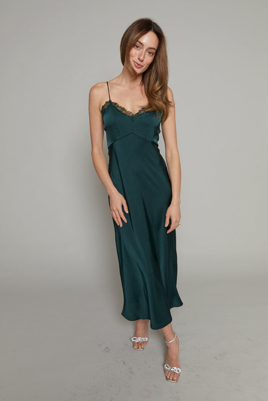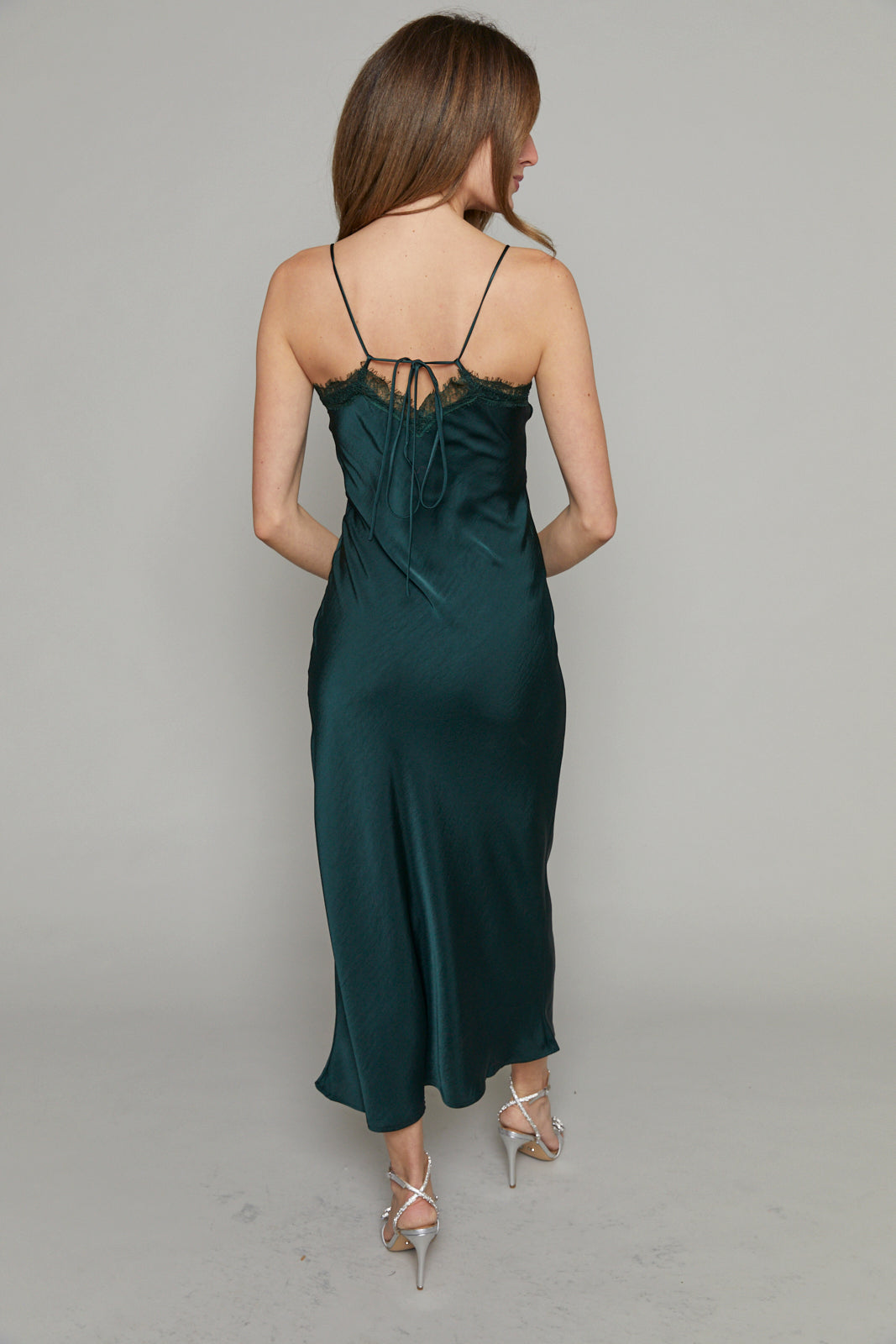Sia Lace Trim Satin Midi Dress - Garland Green