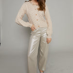 Tommy High Rise Bowed Wide Leg Jean - Champagne Luster