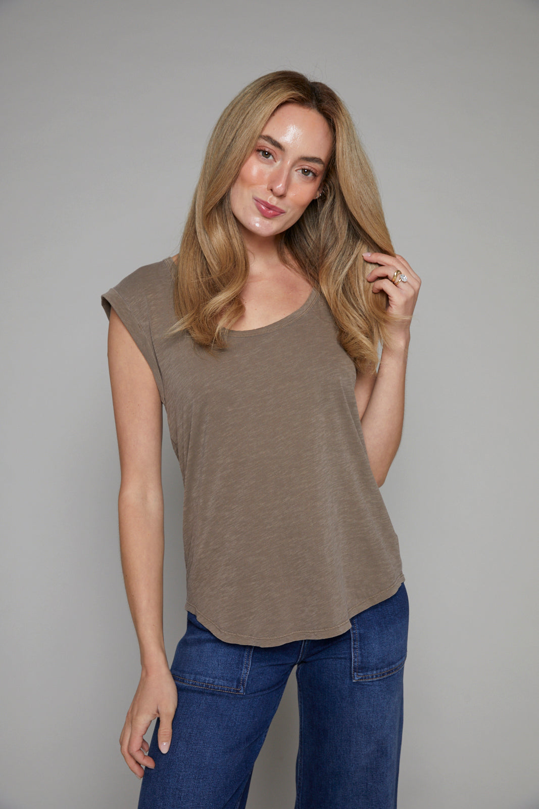 Laid-back and endlessly layerable, this cotton slub jersey tank features a deeper scoop neckline, rolled sleeves, and flattering rounded hemline. Worn tucked or untucked, it's the kind of everyday piece you’ll wear on repeat.