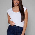 Laid-back and endlessly layerable, this cotton slub jersey tank features a deeper scoop neckline, rolled sleeves, and flattering rounded hemline. Worn tucked or untucked, it's the kind of everyday piece you’ll wear on repeat.